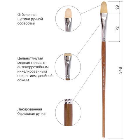 Художественная профессиональная кисть BRAUBERG ART "CLASSIC" № 22 предназначена для работ густыми красками: гуашь, акрил, масло, темпера.Изготовлена с применением щетины чунцинского борова. Кисть отличается универсальностью в использовании, обусловленной упругостью ворса и прекрасными впитывающими свойствами пучка.
