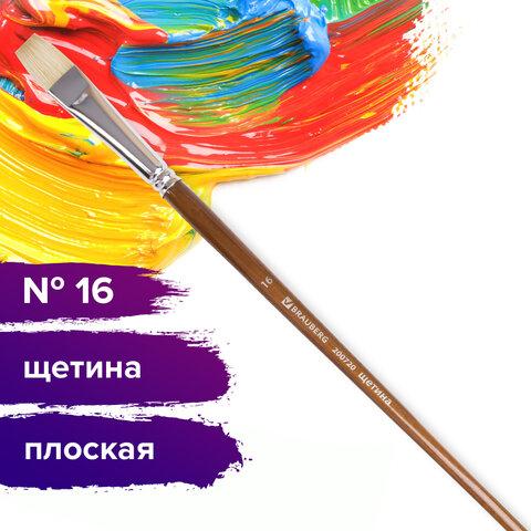 Художественная профессиональная кисть BRAUBERG ART "CLASSIC" № 16 предназначена для работ густыми красками: гуашь, акрил, масло, темпера.Изготовлена с применением щетины чунцинского борова. Кисть отличается универсальностью в использовании, обусловленной упругостью ворса и прекрасными впитывающими свойствами пучка.