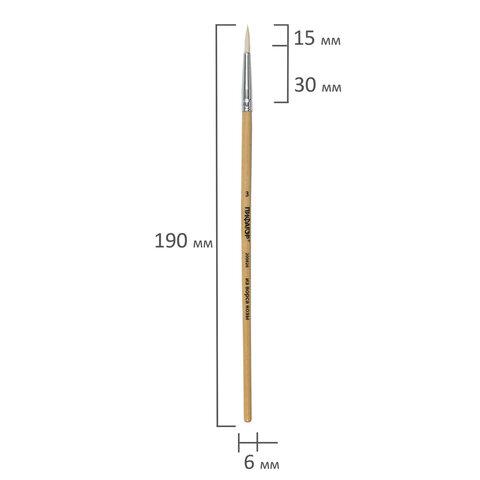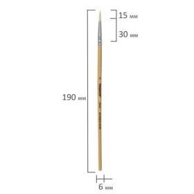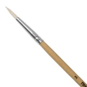 Кисть ПИФАГОР № 3 подходит для работы с акварелью, керамикой, каллиграфического письма, используется в горячем батике. Снабжена защитным пластиковым колпачком.Кисть из волоса козы имеет длинный, мягкий и упругий ворс, хорошо держит краску. Кисть № 3 позволит прорисовывать детали. Деревянную лакированную рукоятку кисти удобно держать в руке.