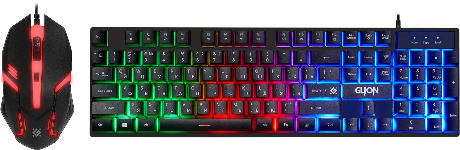 Клавиатура + мышь Defender Glion клав:черный мышь:черный/красный USB LED (45123) / 4dealer.ru