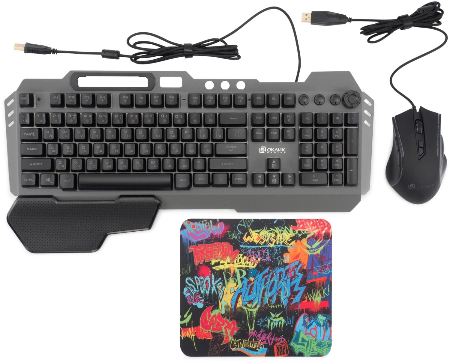 Клавиатура + мышь Оклик 700GMK клав:черный мышь:черный USB Multimedia LED (1533156) / 4dealer.ru