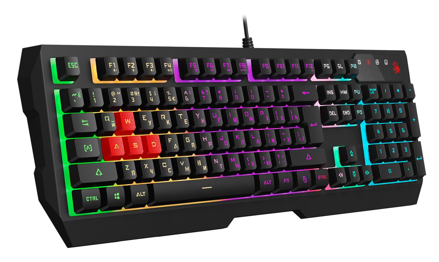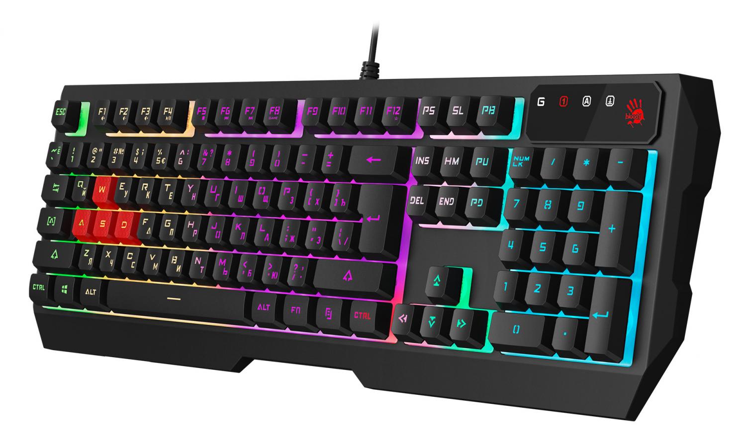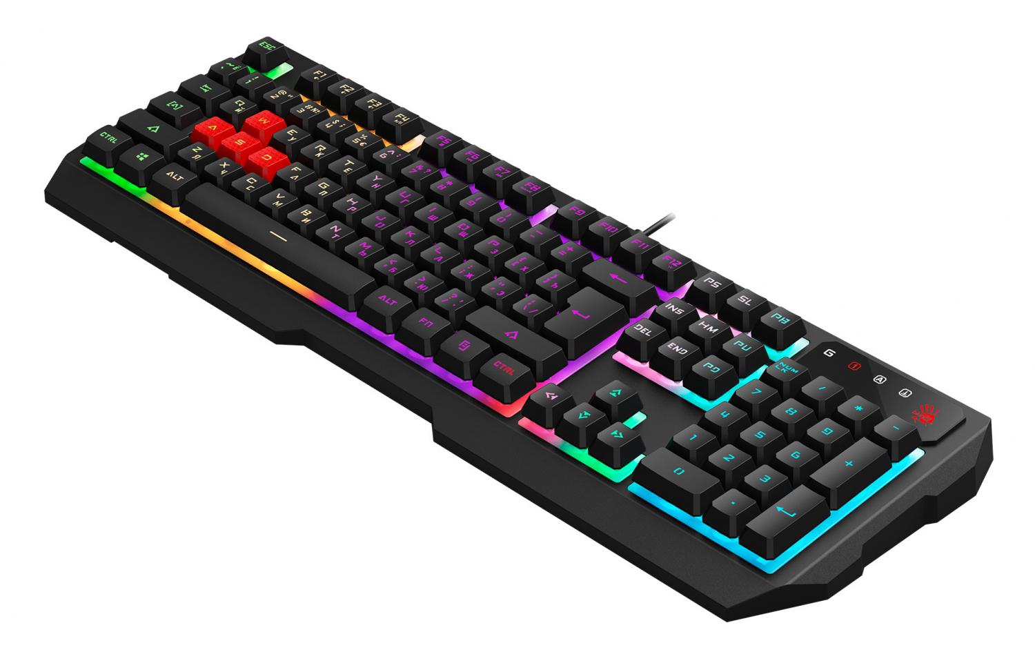 A4Tech Bloody B140N — это проводная клавиатура мембранного типа, созданная для пользователей, которые ищут универсальное решение для дома или офиса. Модель сочетает в себе классическую эргономику полноразмерного корпуса и современные визуальные эффекты, что делает ее одинаково комфортным инструментом как для набора текста, так и для динамичных игровых сессий.