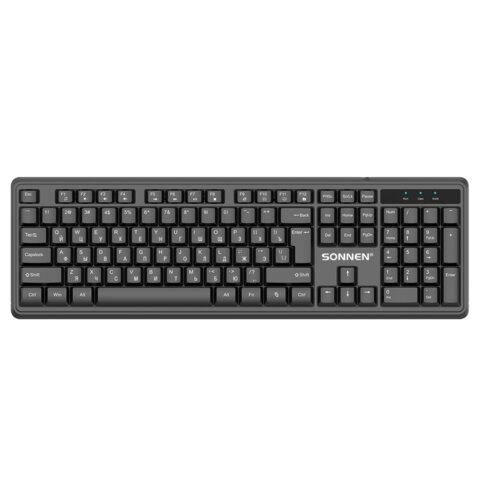 Беспроводная клавиатура SONNEN 1065, имеет современный дизайн, а также оснащена бесшумными клавишами, которые позволяют сфокусироваться на работе за компьютером и ноутбуком. Для начала работы необходимо лишь установить наноресивер в свободный USB-порт.Клавиатура оснащена классическим набором из 104 клавиш с полноразмерными "BackSpace", "Enter" и "Пробел". Все клавиши - бесшумные. Питание набора обеспечивается элементом питания типа AА (в комплект не входит). Радиус действия – 10 м. Цвет – черный. Вес – 420 г. Размер – 25,3х136х438 мм. АДАПТЕР ЛЕЖИТ В ОТСЕКЕ ДЛЯ БАТАРЕЕК!
