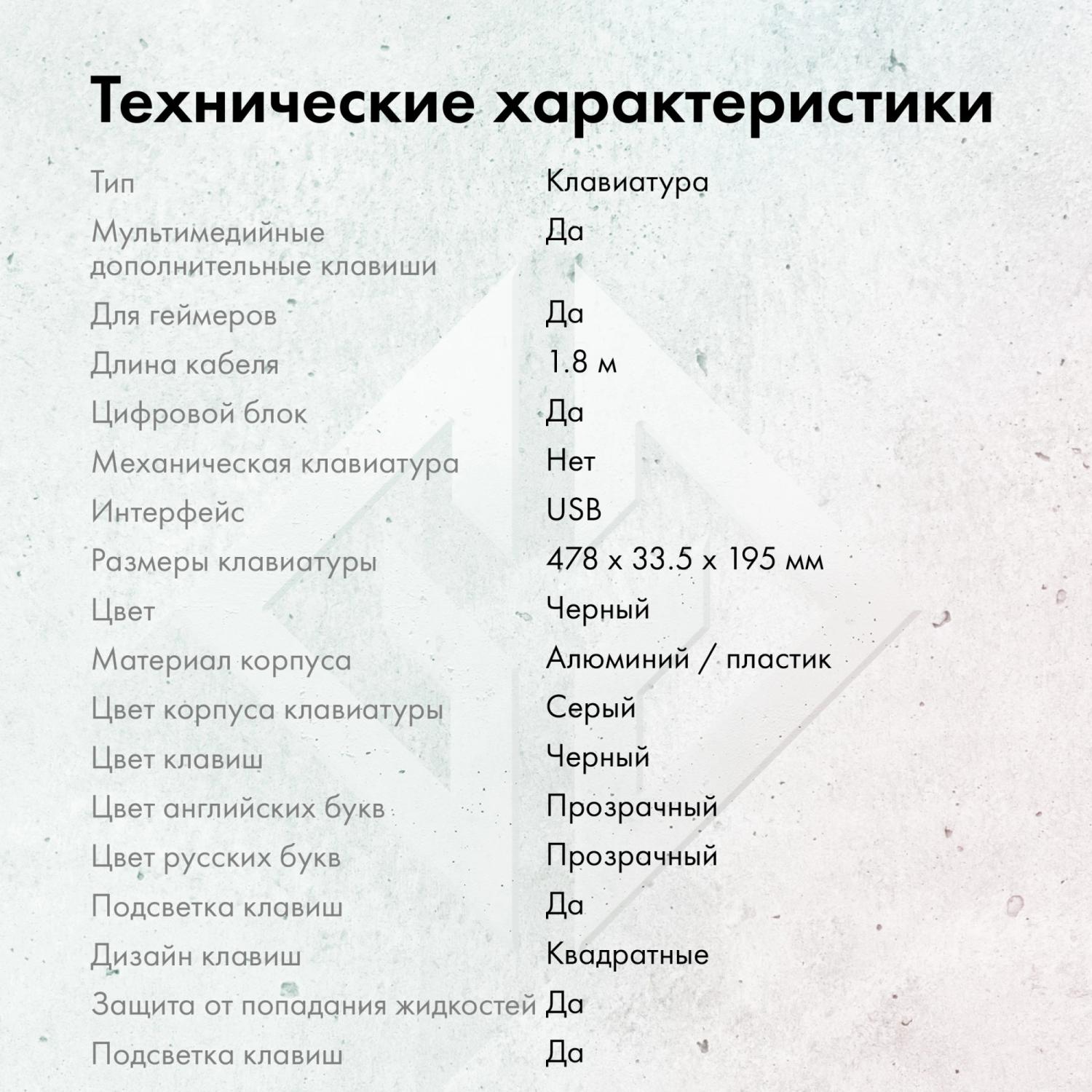 | Цвет подсветки | RGB |