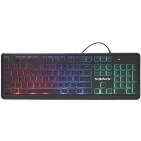 Клавиатура SONNEN K308 создаст отличные условия для работы и развлечений. Благодаря мембранному механизму клавиатура работает практически бесшумно, поэтому не создаст неудобств для сидящих рядом с вами в офисе сотрудников.Имеет классическую раскладку – 104 клавиши. Корпус выполнен из ударопрочного ABS-пластика черного цвета. Снабжена LED-подсветкой. С помощью F клавиш можно использовать дополнительные мультимедийные функции, которые можно включать, используя функциональные клавиши клавиатуры (F1-F12).