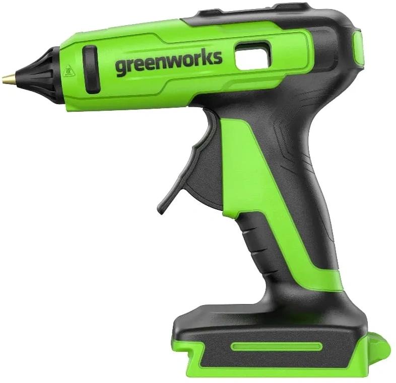 | Особенности | Компактный и лёгкий клеевой пистолет Greenworks G24GLG поможет в ремонтных работах, в творчестве и в бизнесе, склеивая между собой самые разнообразные материалы. |
