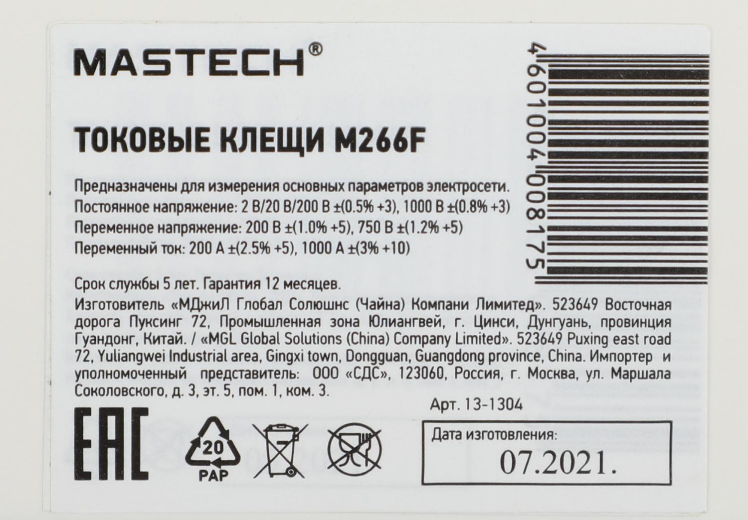 | Стандарты безопасности | CAT II 1000V, CAT III 600V |