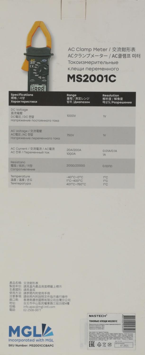 | Описание | Токоизмерительные клещи MS2001 предназначены для измерения силы переменного тока, постоянного и переменного напряжения и сопротивления. С помощью данного прибора можно проверить качество соединений в электрической схеме. Последний полученный результат можно зафиксировать с помощью функции DATA HOLD. |