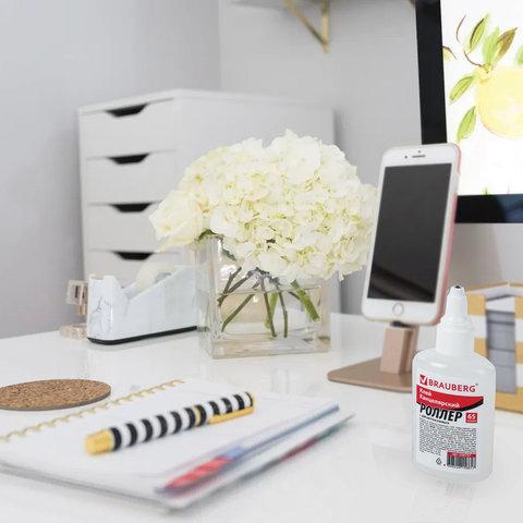 Канцелярский клей-роллер BRAUBERG без труда склеивает бумагу, картон, ткань. Незаменим в доме, школе и офисе.Объем - 65 мл. Подпружиненный шарик аппликатора не позволит самостоятельно пролиться клею даже из перевернутого флакона. Обеспечивает экономичное использование клея до последней капли. Клей не токсичен, легко удаляется с одежды и поверхностей. Морозоустойчивый. Клей нетоксичен и безопасен в использовании.