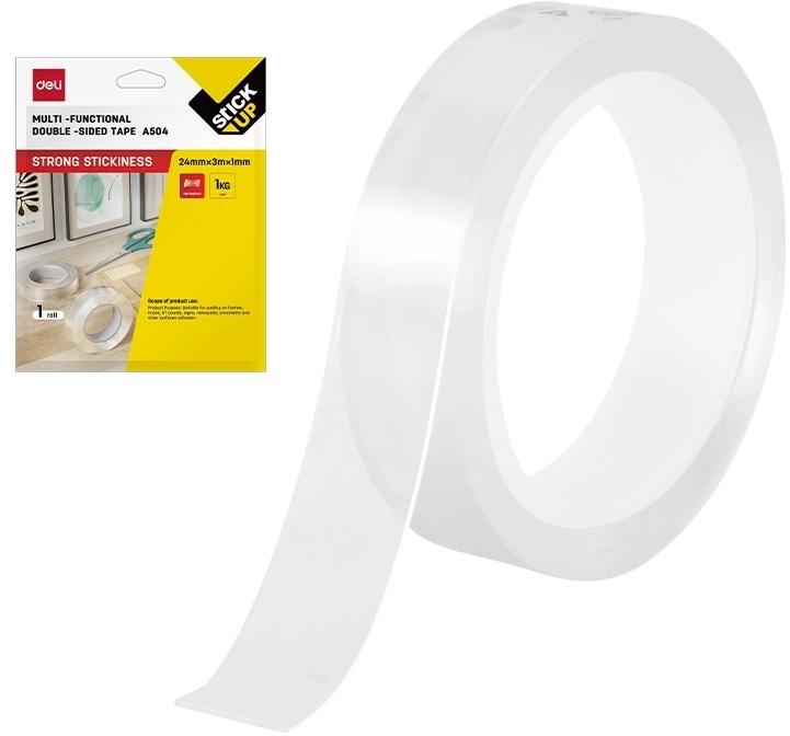 Клейкая лента универсальная двусторонняя Deli EA504 прозрачная шир.24мм дл.3м