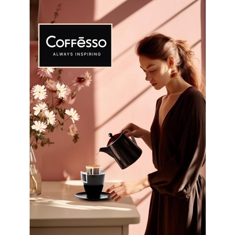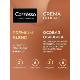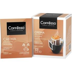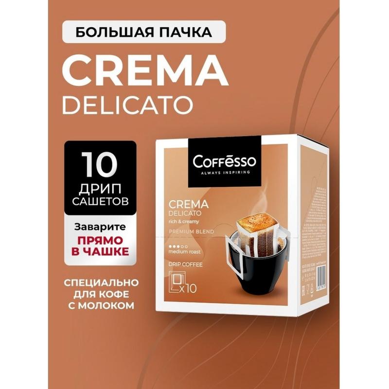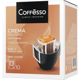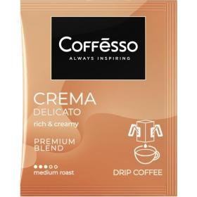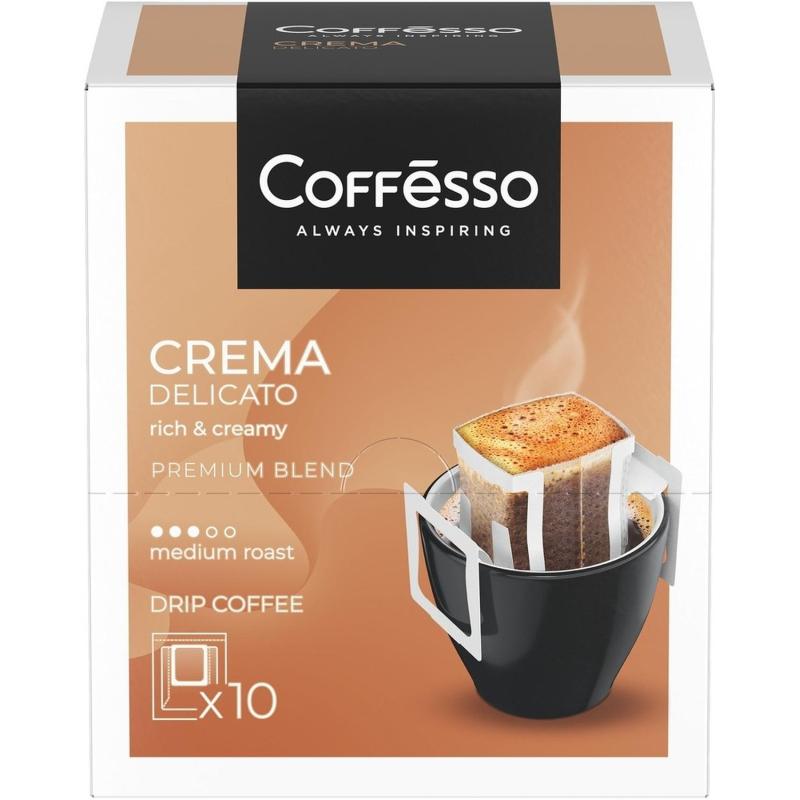 Кофе молотый в дрип-пакетах Coffesso Crema Delicato 90 г (10 штук в упаковке) Кофе Coffesso 'Crema Delicato' молотый в дрип-пакетах, 10 шт по 9 г. Насыщенный аромат и бархатистая текстура Coffesso Crema Delicato откроют моменты наслаждения простыми удовольствиями в любом месте - дома, в офисе или в путешествии. Кофе в дрип-пакетах для тех, кто хочет чувствовать максимум ощущений, особенно в кофе. К тому же теперь это так же просто, как раз, два, три - открой, установи, залей - и готово! Состав продукта: Арабика, робуста. Энергетическая ценность в (ККАЛ): 3. Условия хранения продуктов: хранить при температуре на выше 30 С и относительной влажности воздуха не более 75%. Для приготовления: открыть, установить на чашку, пролить горячей водой, дать процедиться, повторить, после пролива 150-180 мл убрать дрип-пакет.