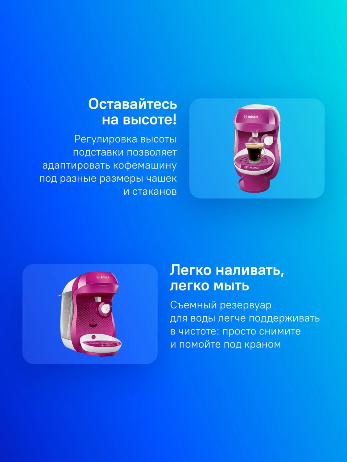 | Особенности | Запатентованная технология Т-дисков: интеллектуальная система считывания штрих-кода (распознавание типа напитка, размера порции, времени заваривания и технологии его приготовления). Программа автоматической чистки и удаления накипи с использованием сервисного Т-диска (в комплекте к прибором). |