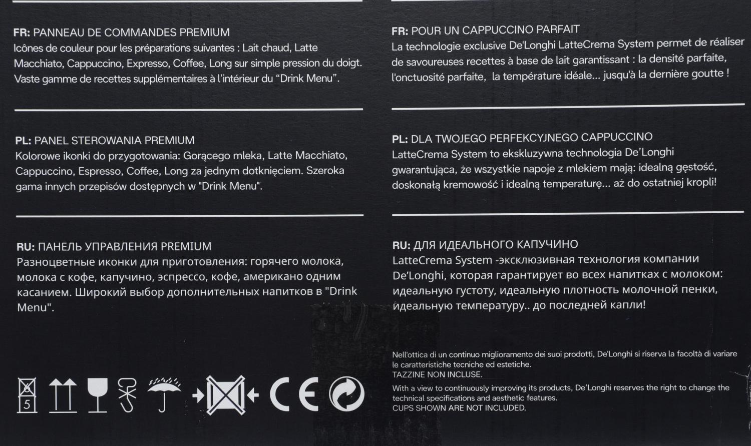 | Съемные элементы | блок заваривания, дренажный отсек для капель, отсек для отработанного кофе, резервуар для воды |