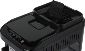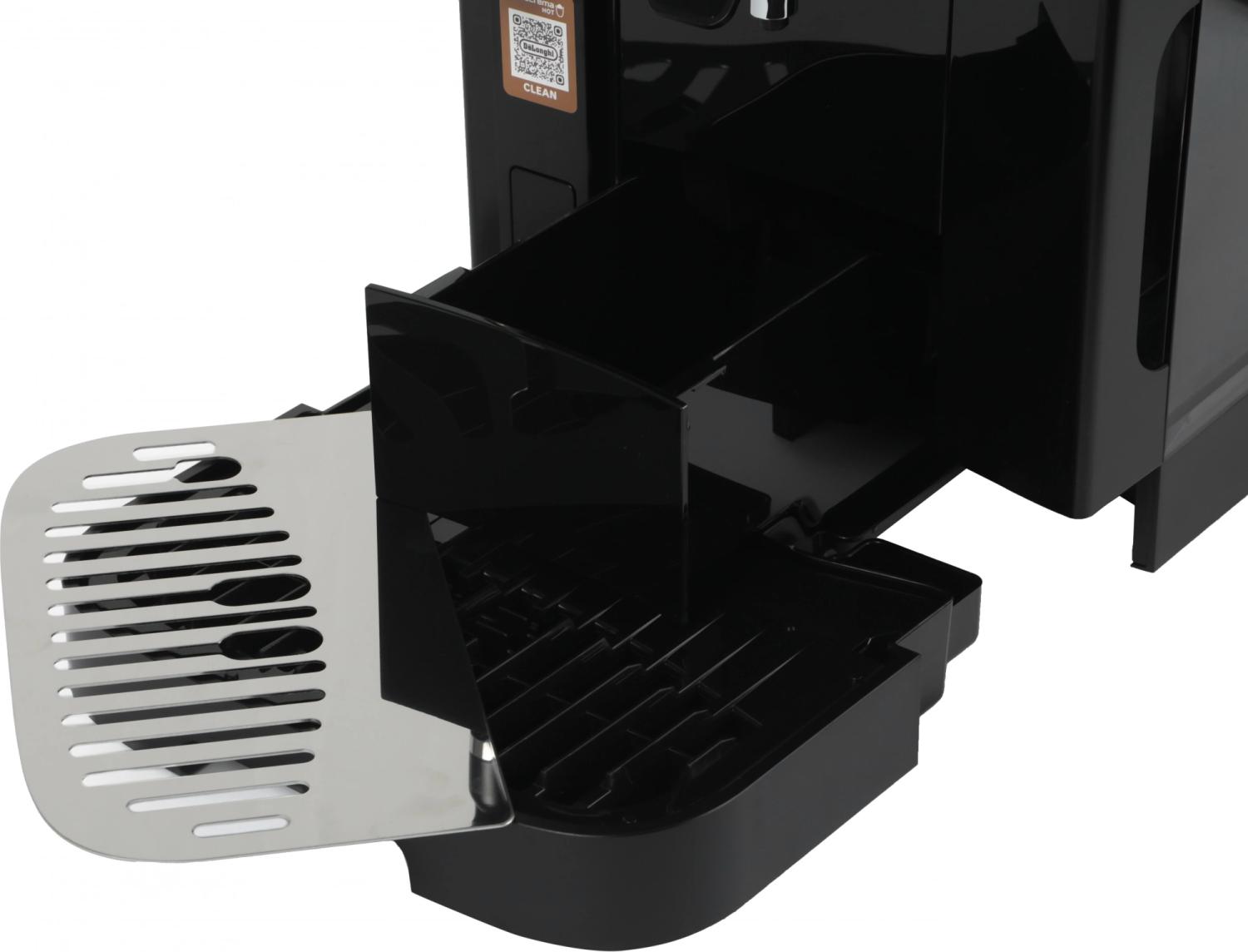 Прибор оснащен жерновой кофемолкой с 13 степенями помола – выбирайте оптимальный в зависимости от выбранного напитка, бленда зерен и экспериментируйте. Контейнер для зерен вмещает 250 г. С помощью автоматического капучинатора вы с легкостью сможете приготовить капучино, эспрессо, латте или просто взбить молоко для любимых напитков. О необходимости добавить кофе предупредит специальный индикатор. Появится оповещение и когда потребуется провести цикл очистки от накипи.