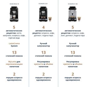 Кофемашина DELONGHI Magnifica Evo ECAM290.61.B является образцом практичности и высочайшего качества, что позволяет простым нажатием кнопки приготовить любимый напиток, используя как зерновой кофе, так и молотый.Кофемашина DELONGHI Magnifica Evo ECAM290.61.B - незаменимая техника для кофейных гурманов и просто любителей чудесного ароматного напитка. Возможно, некоторые спросят, зачем покупать габаритную машину для приготовления кофе, если можно воспользоваться компактной кофеваркой? Однако, преимущество приготовления напитка в кофемашине имеется - помол зерна происходит индивидуально для каждой новой порции, это означает, что в Вашу чашечку кофе попадет весь ароматный букет свежо смолотых зерен. Кроме того, кофе подвергается обработке пароводяной смесью, гарантирует его хорошую экстракцию. Всего лишь по нажатию одной кнопки за считанные минуты вы получите целебный напиток как из молотого кофе, так и из зерен.