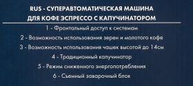 | Напитки, приготовливаемые автоматически | капучино, лунго, ристретто, эспрессо |