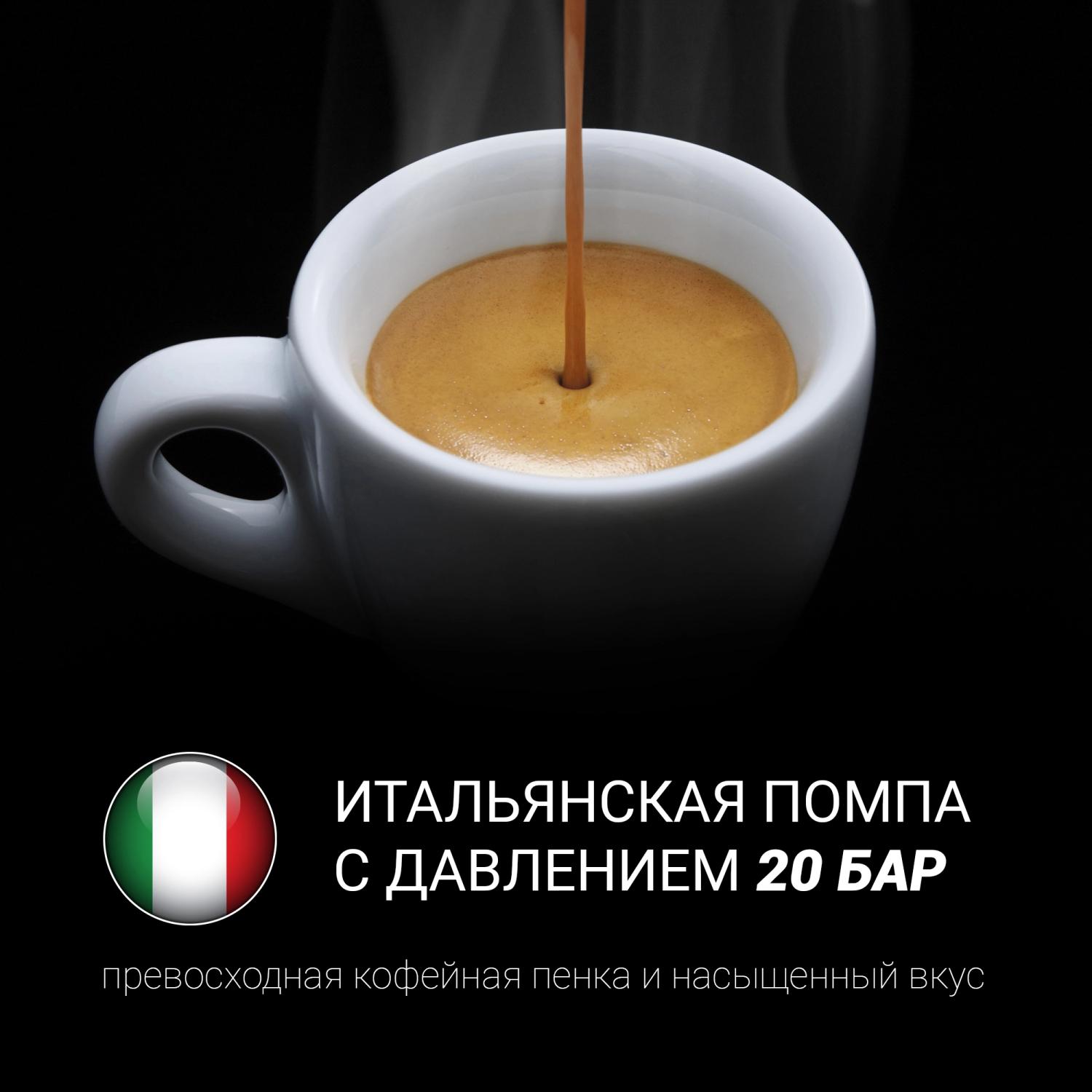 | Съемные элементы | блок заваривания, дренажный отсек для капель, отсек для отработанного кофе, резервуар для воды |