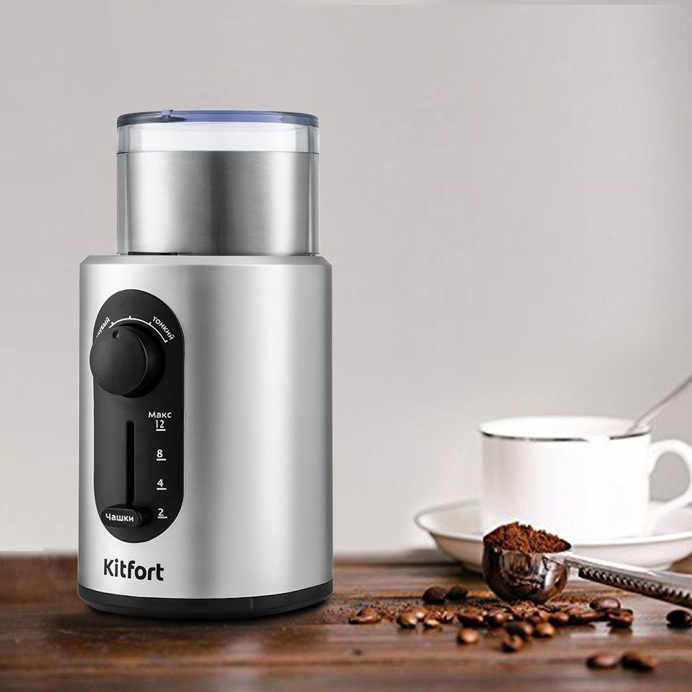 Кофемолка Kitfort KT-748 200Вт сист.помол.:ротац.нож вместим.:70гр нержавеющая сталь/черный