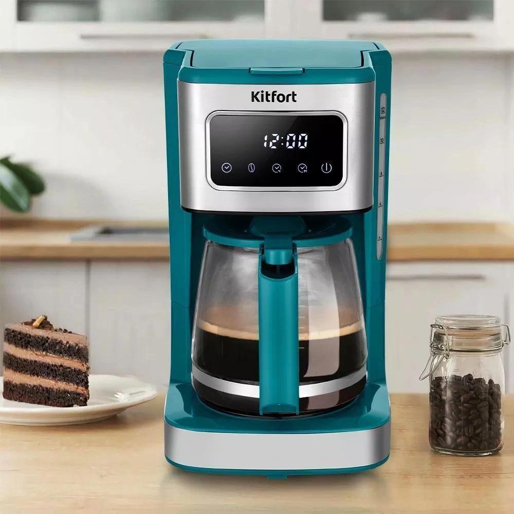 Кофеварка капельная Kitfort КТ-7251 1000Вт бирюзовый/нержавеющая сталь / 4dealer.ru