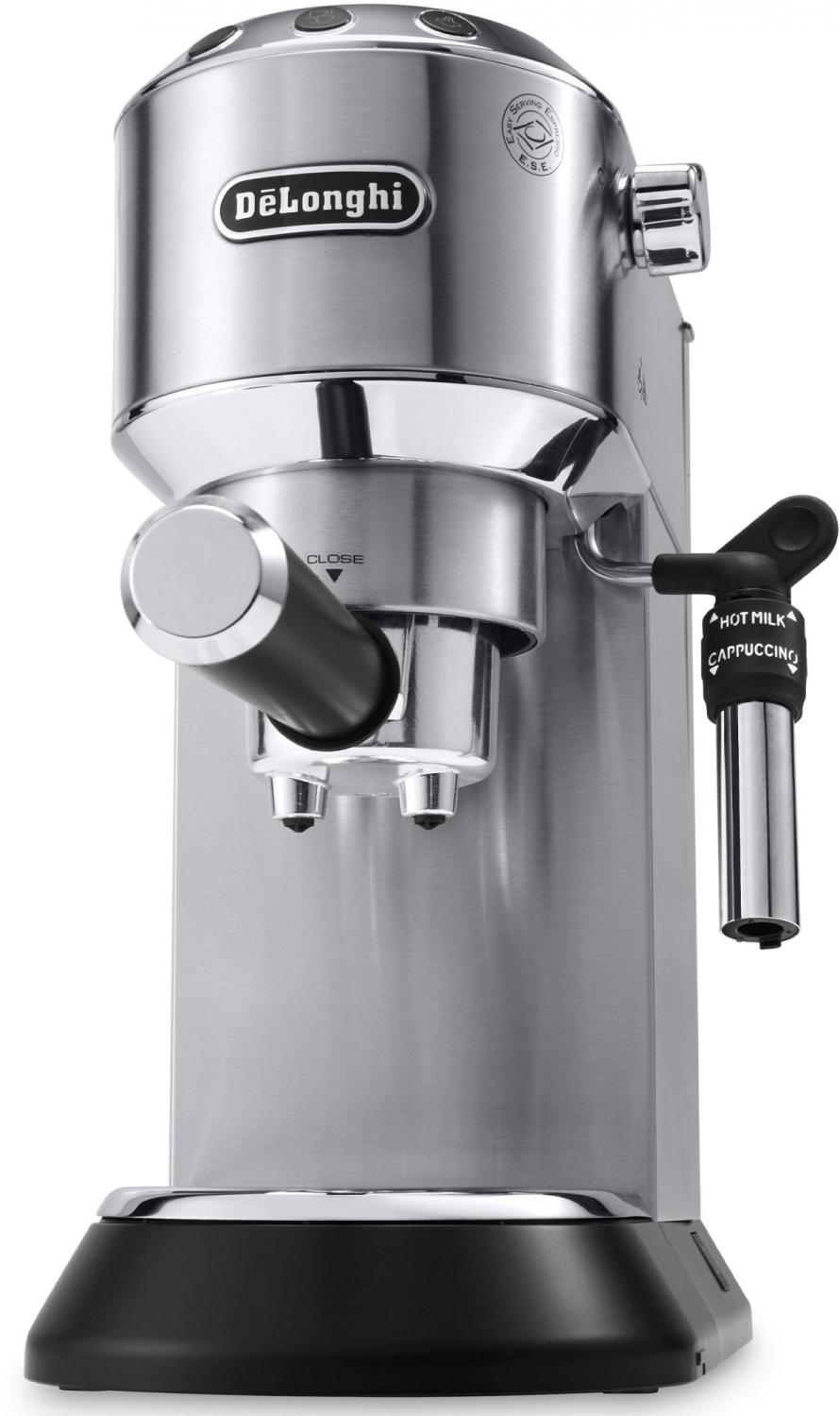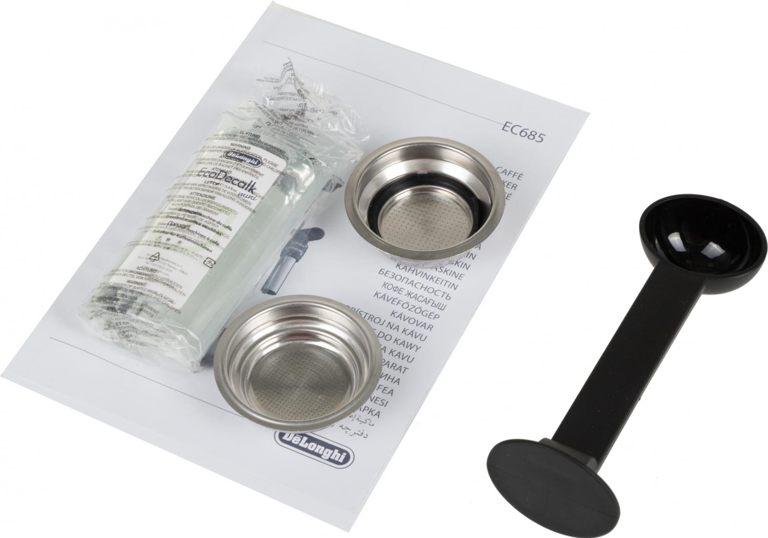 Кофеварка рожковая DELONGHI Dedica EC685.M - стильное и простое в использовании устройство, которое понравится поклонникам ароматного напитка. Стильный черный корпус кофеварки сделает ее настоящим украшением кухни или офиса.Кофеварка рожкового типа DELONGHI EC685.M выполнена в стильном металлическом корпусе. Это элегантная и удобная в использовании модель, которая украсит кухню и каждый день будет радовать крепким бодрящим эспрессо и молочными напитками на его основе. За вспенивание молока отвечает ручной капучинатор, в комплект входит насадка-панарелло.