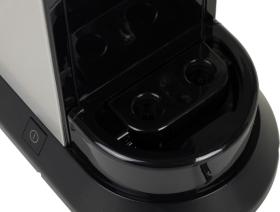 Объем резервуара для воды составляет 1,1 л – хватит сразу на несколько завариваний подряд. Подставка под чашки двойная. Это позволяет использовать как миниатюрные чашечки-эспрессо, так и высокие бокалы для латте. Для их подогрева есть специальная панель – напитки дольше останутся горячими. Капли собираются в поддон – столешница будет чистой.