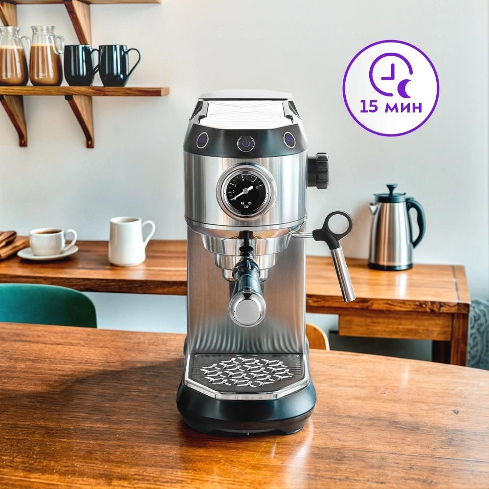 Кофеварка рожковая Kitfort КТ-7194 1450Вт нержавеющая сталь/черный / 4dealer.ru