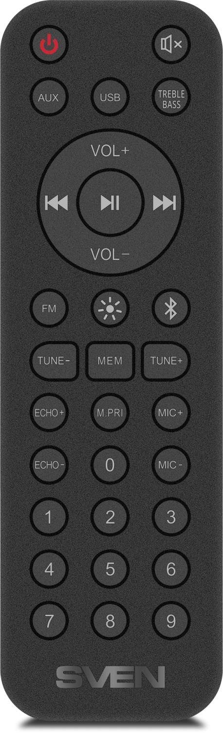 | Комплектация | Акустическая система -1 шт. Сигнальный кабель 3,5 мм mini-jack к 3,5 мм mini-jack -1 шт. Сетевой кабель питания -1 шт. Пульт дистанционного управления (ПДУ) -1 шт. Элементы питания типа ААА -2 шт. Проводной микрофон для караоке -1 шт. Руководство пользователя -1 шт. Гарантийный талон -1 шт. |