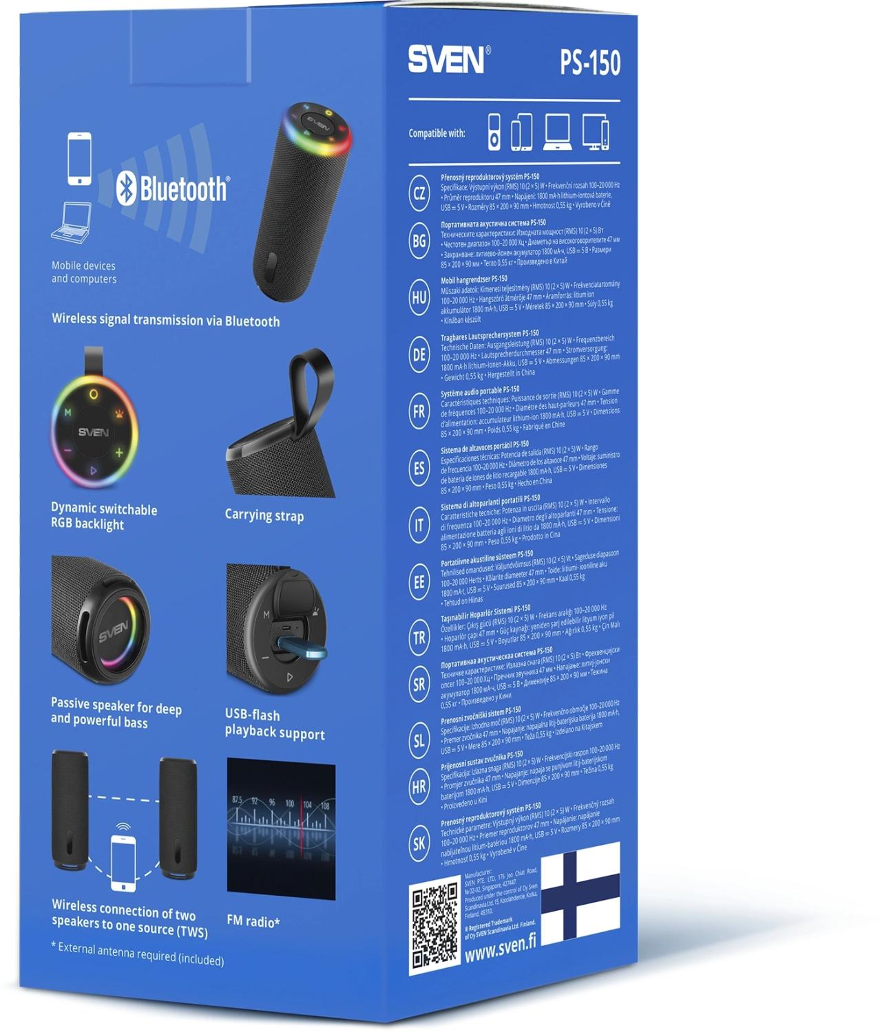 Колонка порт. Sven PS-150 черный 10W 2.0 BT/3.5Jack 1800mAh (SV-022327) / 4dealer.ru