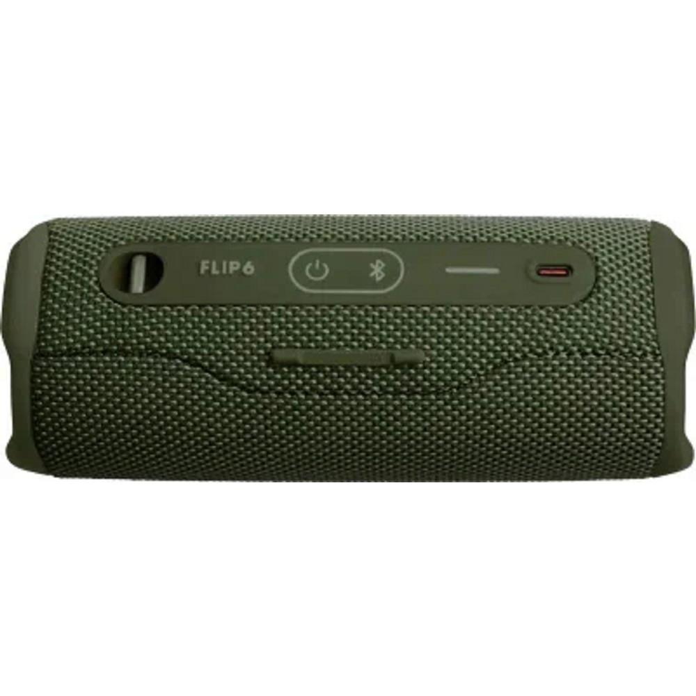 Модель Flip6|Цвет зеленый|Тип портативный/водозащитный/беспроводной|Звуковая схема 1.0|P.M.P.O. 30 Вт|Частотный диапазон 63 Гц - 20 000 Гц|1xUSB type C|Bluetooth|Аксессуары в комплекте 1 х JBL флип 6 1 х USB-кабель типа C 1 х краткое руководство 1 х гарантийный талон/паспорт безопасности|Время работы батареи 12 ч.|Размер 178x72x68 mm