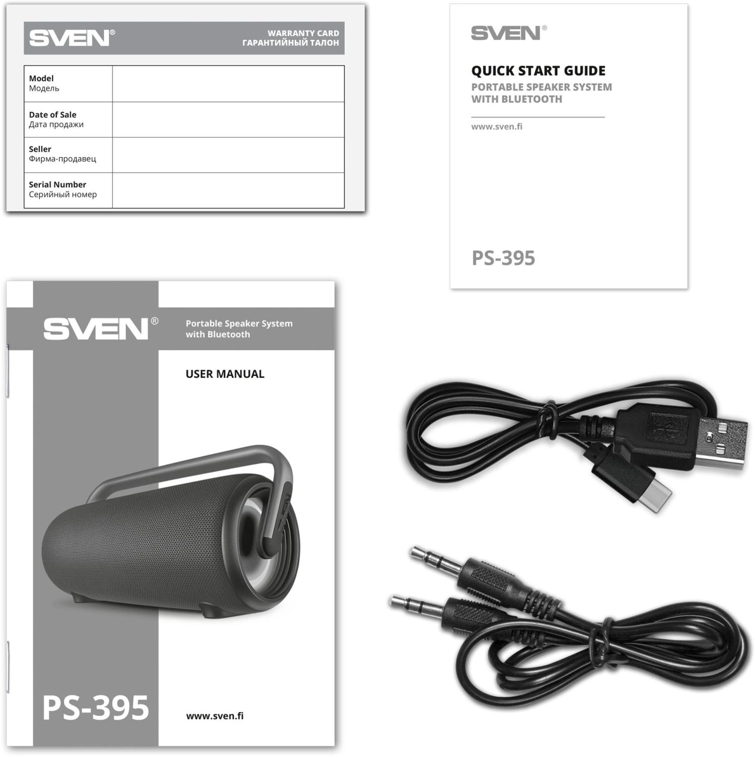 | Наименование для печати | Колонка SVEN АС PS-395, черный (80 Вт, Waterproof (IPx5), TWS, Bluetooth, USB, 4800мА*ч) |