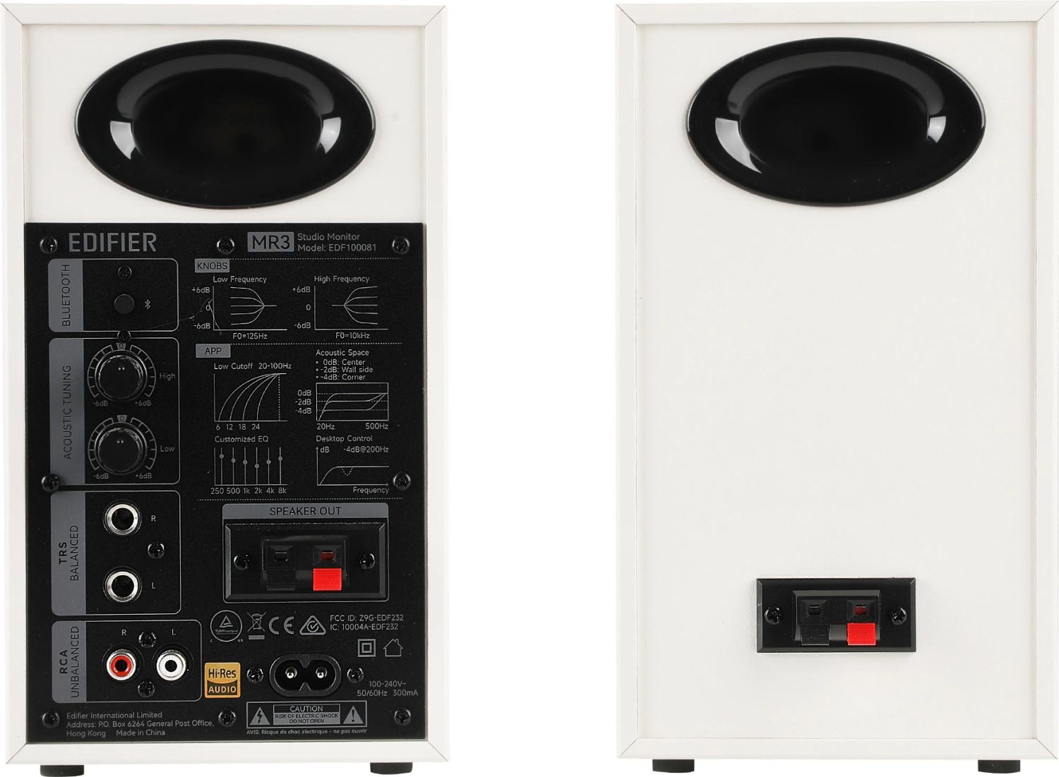 | Особенности | Плоская АЧХ. Сертификация Hi-Res Audio. Несколько вариантов акустической настройки. Корпус из МДФ. 3,5-дюймовые средне-низкочастотные динамики и 1-дюймовые шелковые купольные твитеры. Обработка звука с высоким разрешением 24 бит / 96 кГц. Работает с мобильным приложением EDIFIER ConneX |