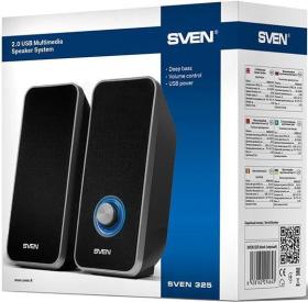 | Наименование для печати | Колонки Sven 325 2.0 black, стерео, 80-20000 Гц, 6 Вт, mini jack 3.5 мм, USB, цвет: черный |