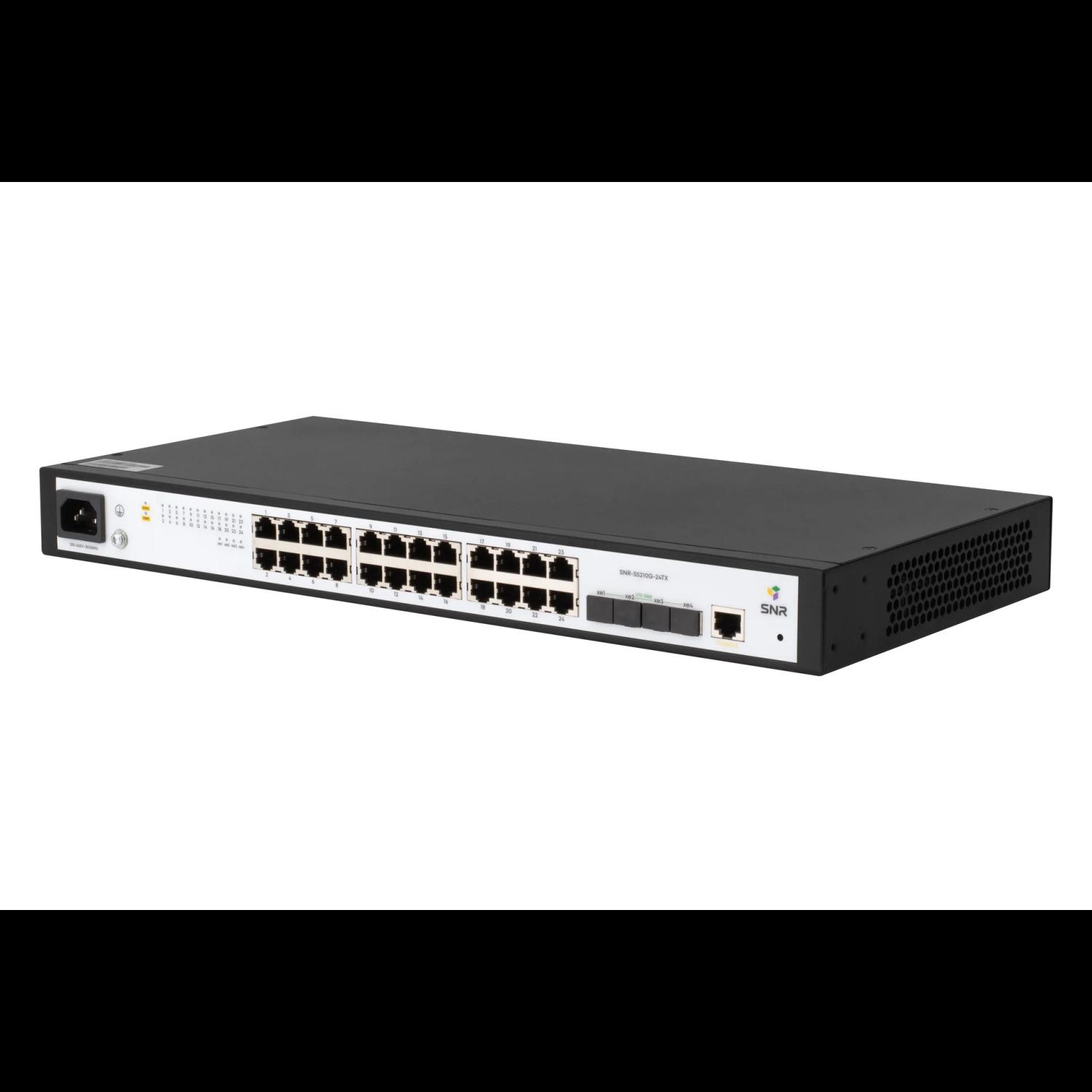 Управляемый гигабитный L2+ коммутатор SNR-S5210G-24TX – это бюджетное решение для построения сетей доступа c 10G uplink-портами. Коммутатор оснащен 24 портами 10/100/1000Base-T и 4 портами 1/10G SFP+, поддерживает статическую маршрутизацию до 512 IPv4 маршрутов, 1024 multicast групп, 16K MAC, 1536 ACL. Для организации отказоустойчивых сетей реализована поддержка стандартных протоколов STP/RSTP/MSTP, а также ERPS (G.8032). На коммутаторе поддерживается комплескный функционал безопасности, управление многоадресной рассылкой и гибкие политики обслуживания QoS, что позволяет сконфигурировать стабильную сеть под любые задачи.