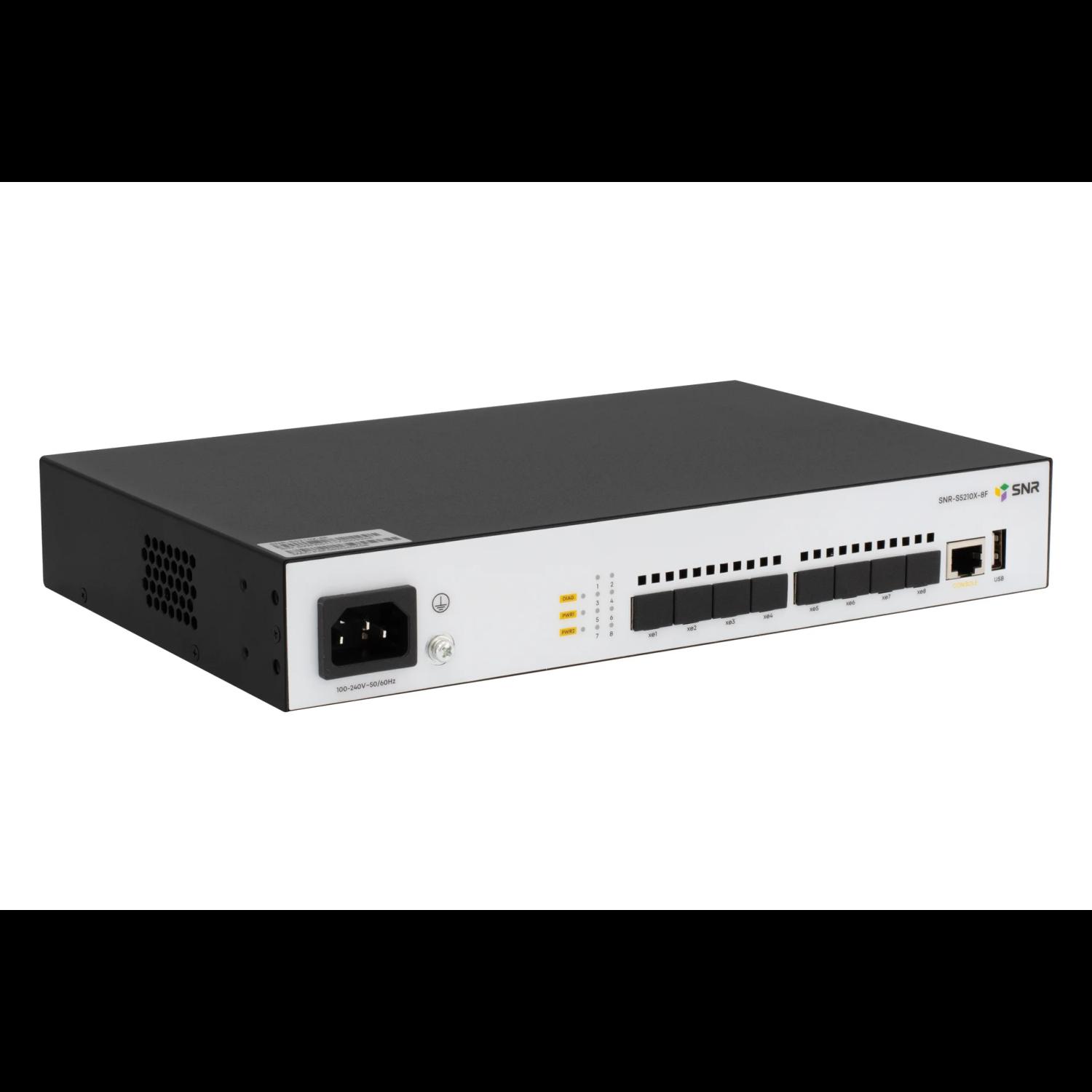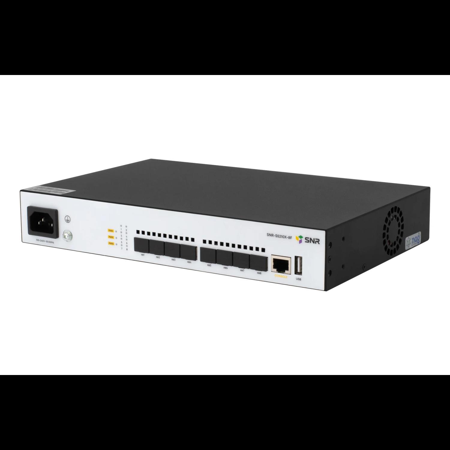 Управляемый гигабитный L2+ коммутатор SNR-S5210X-8F – это бюджетное решение для агрегации каналов связи, а также для объединения серверов, систем хранения данных и клиентов. Коммутатор оснащен 8 портами 1/10G SFP+, поддерживает статическую маршрутизацию до 512 IPv4 маршрутов, 1024 multicast групп, 16K MAC, 1536 ACL. Для организации отказоустойчивых сетей реализована поддержка стандартных протоколов STP/RSTP/MSTP, а также ERPS (G.8032). На коммутаторе поддерживается комплескный функционал безопасности, управление многоадресной рассылкой и гибкие политики обслуживания QoS, что позволяет сконфигурировать стабильную сеть под любые задачи.