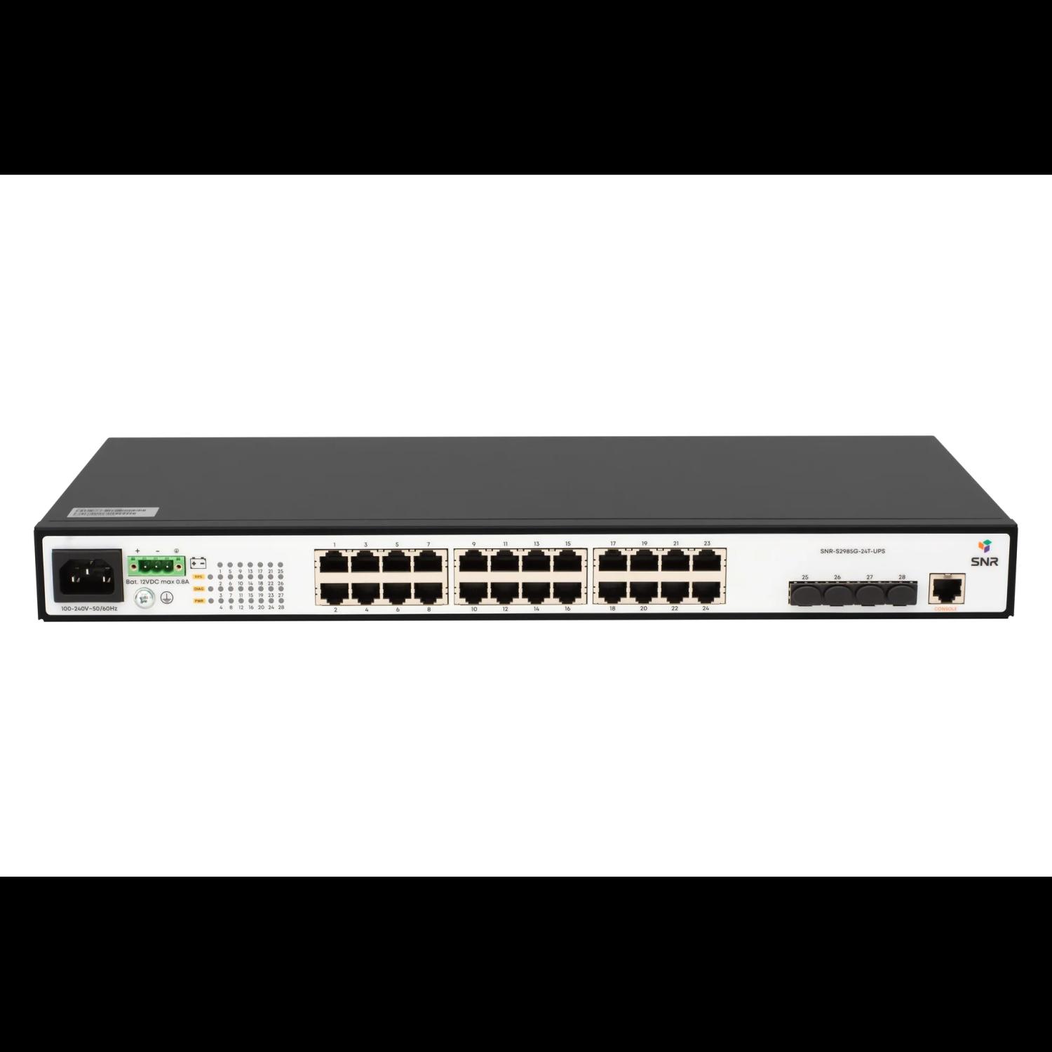 Управляемый гигабитный L2-коммутатор SNR-S2985G-24T-UPS – это оптимальное решение для построения сетей доступа. Коммутатор оснащен 24 портами 10/100/1000Base-T и 4 портами 100/1000Base-X SFP. По сравнению с коммутаторами серии S2982 он поддерживает до 2048 multicast групп, 16K MAC, 2048 ACL, а также имеет мониторинг электропитания. Для организации отказоустойчивых сетей реализована поддержка стандартных протоколов STP/RSTP/MSTP, а также ERPS (G.8032). Также реализована возможность виртуального тестирования медного кабеля для определения типа и места неисправности. На коммутаторе поддерживается комплескный функционал безопасности, управление многоадресной рассылкой и гибкие политики обслуживания QoS, что позволяет сконфигурировать стабильную сеть под любые задачи.