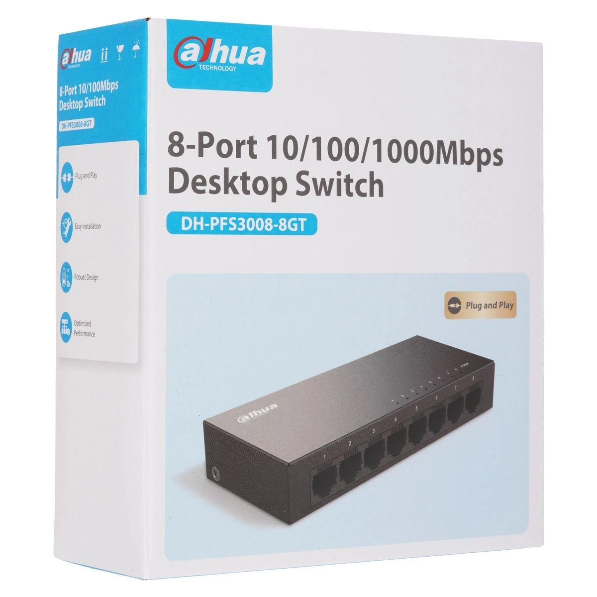 Коммутатор Dahua 8-port Gigabit RJ45 Non-PoE Switch, Metal case