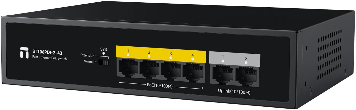 Коммутатор Netis ST106PDI-2-43 (L2) 6x100Мбит/с 4PoE 43W неуправляемый / 4dealer.ru