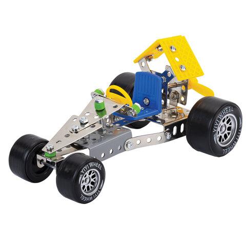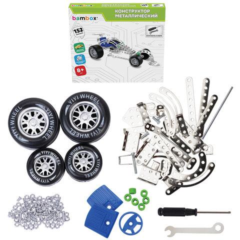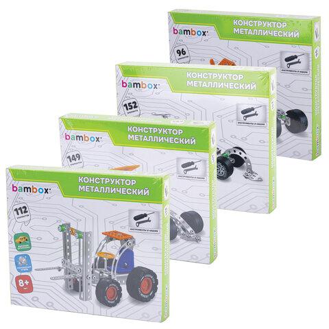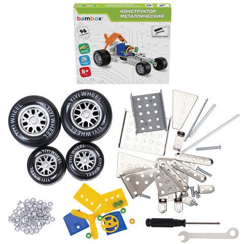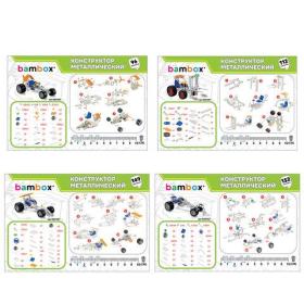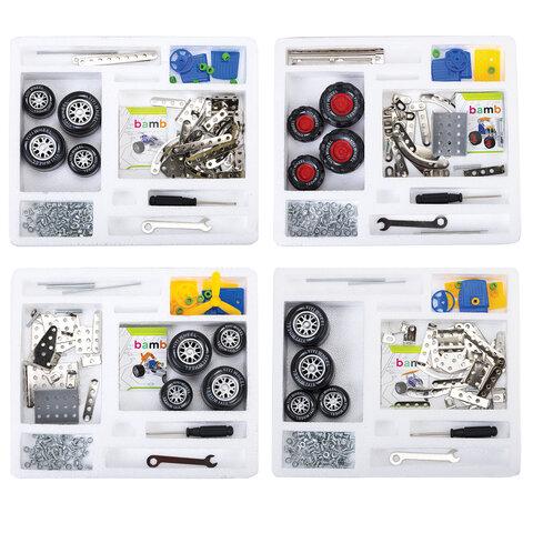 Конструктор металлический BAMBOX "Машинки" 4 вида ассорти –– развивающая игрушка для детей старше 8 лет. Конструктор идеально подходит для занятий на уроках труда и комплексного развития ребёнка.Каждый элемент металлического конструктора BAMBOX "Машинки" 4 вида ассорти продуман до мелочей. Круглые отверстия упрощают соединение деталей, а набор инструментов позволяет надежно закрепить их винтами и гайками.