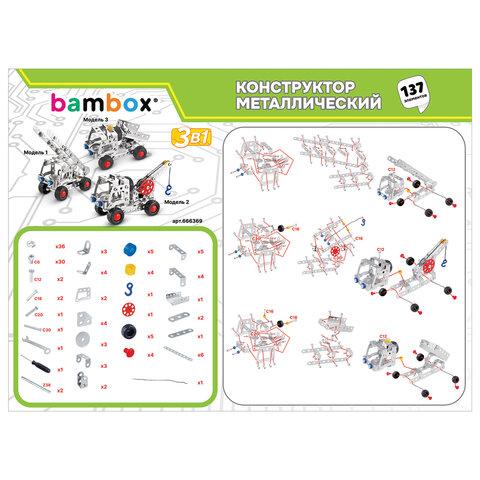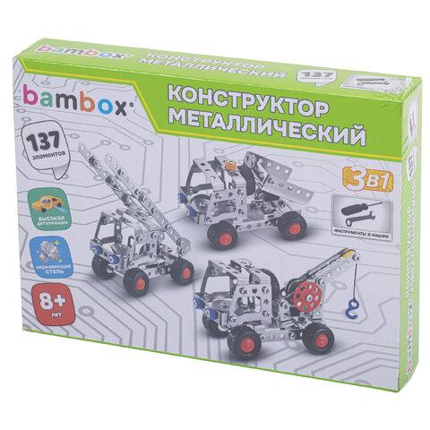 Металлический конструктор BAMBOX "Строительная техника 3в1" –– развивающая игрушка для детей старше 8 лет. Конструктор идеально подходит для занятий на уроках труда и комплексного развития ребёнка.Каждый элемент металлического конструктора BAMBOX "Строительная техника 3в1" продуман до мелочей. Круглые отверстия упрощают соединение деталей, а набор инструментов позволяет надежно закрепить их винтами и гайками.