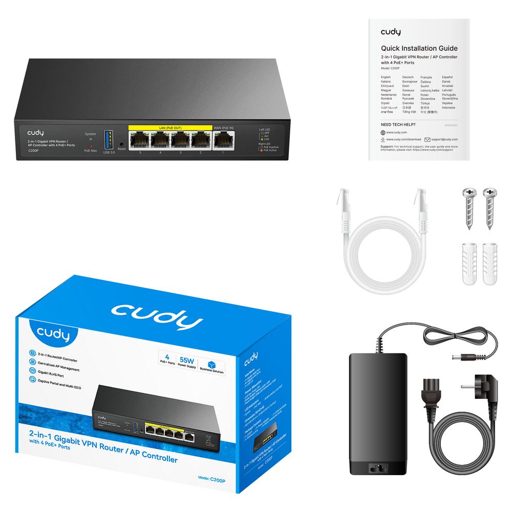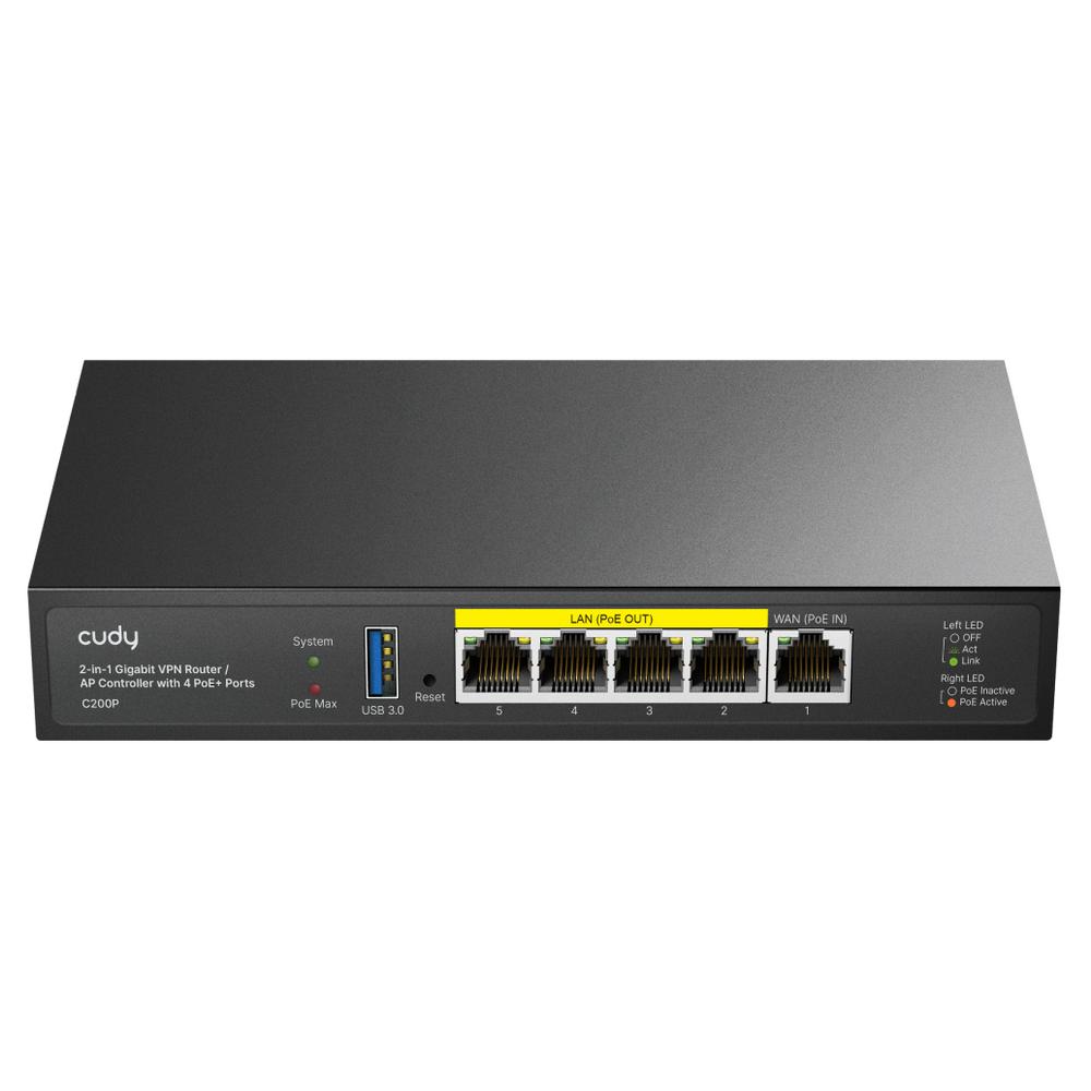 Данный маршрутизатор поддерживает технологию Cudy Mesh, а также имеет пять гигабитных портов (из них четыре — с поддержкой PoE+) и встроенный контроллер, позволяющий управлять точками доступа Cudy.