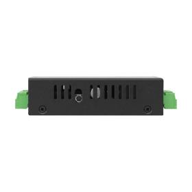 Прочный металлический корпус обеспечивает защиту в промышленных условиях. Устройство рассчитано на круглосуточную работу в расширенном диапазоне температур. Крепление на DIN-рейку упрощает монтаж и повышает надёжность установки.