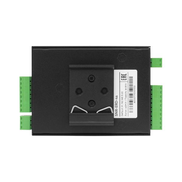 | Дополнительная информация | Порты DIO (дискретные входы/выходы) - 5 шт, программируемые на вход или на выход; Цифровой вход 1-wire - 1 шт, для подключения датчиков температуры SNR-DTS-2 или комбинированных датчиков влажности и температуры SNR-DHTS-0.5m; Вход PHD - 1 шт, отслеживание наличия напряжения, функция «датчик фазы»; Аналоговый вход AI - 1 шт.: 0-76В DC / 0-20 мА; Преобразователи интерфейсов Ethernet - RS232, Ethernet - 485; Универсальное питание, через винтовой коннектор 9-48В, PoE, Passive PoE 48 В; Встроенное реле с перекидным контактом для управления нагрузкой: 220 В, NC 5 A, NO 10 А; Порт Ethernet 10/100-BASE-TX. |