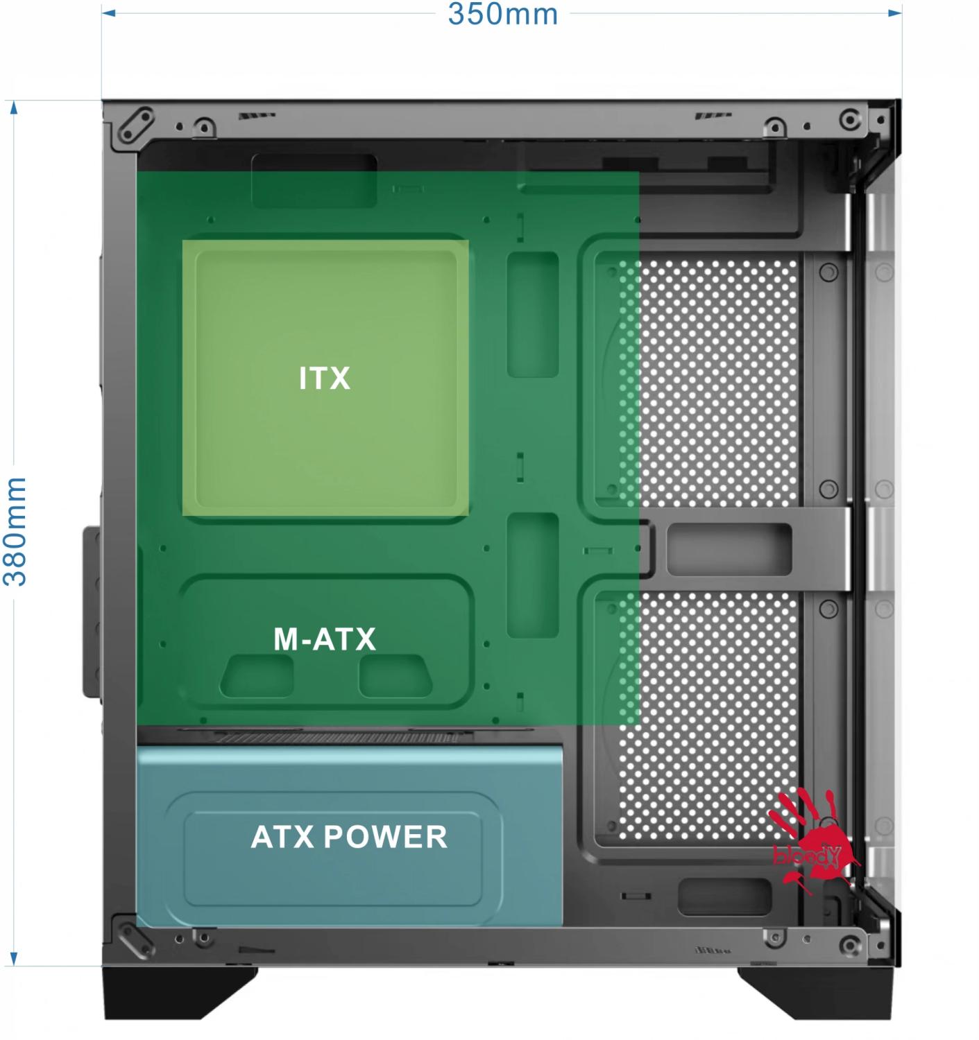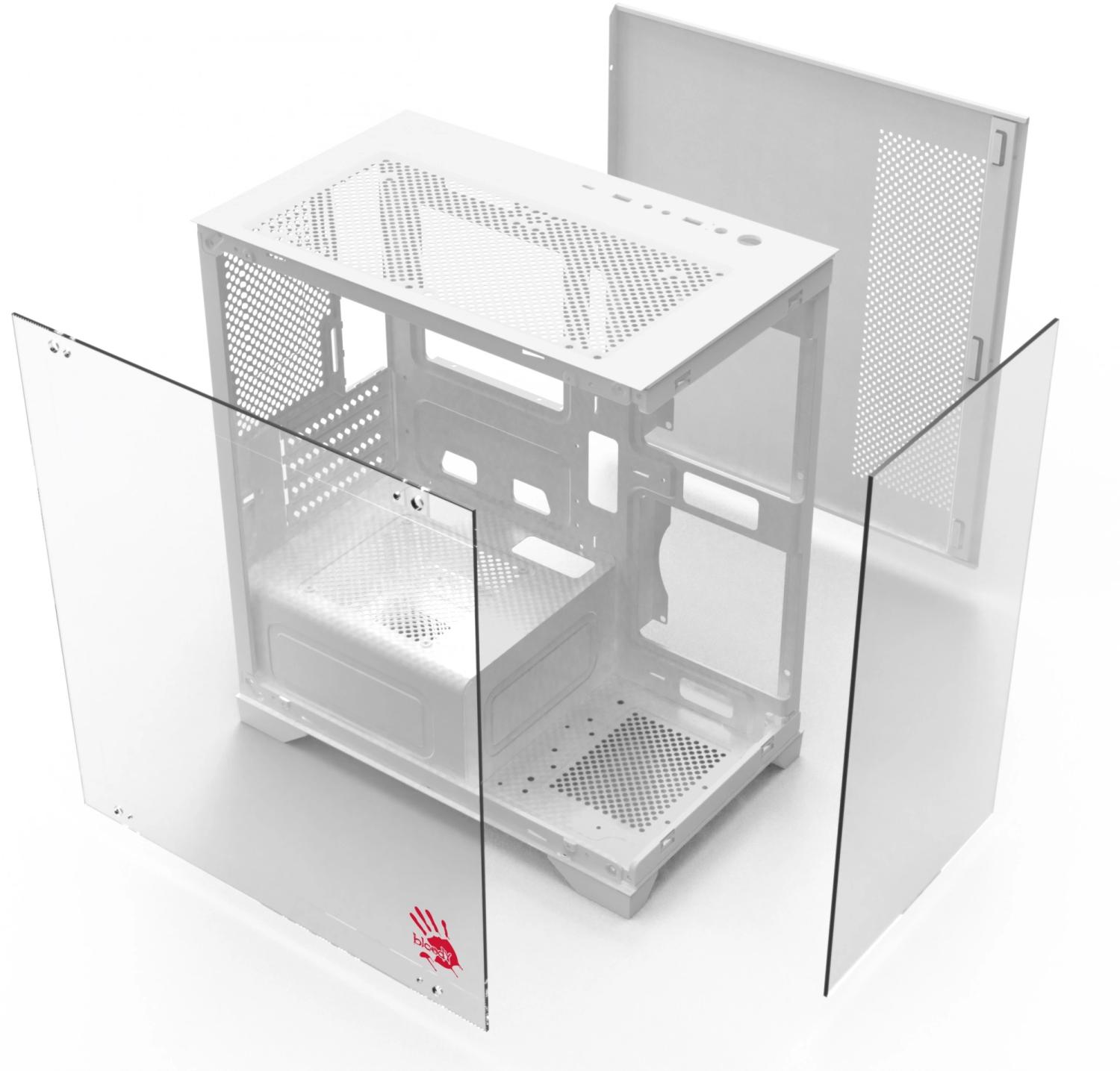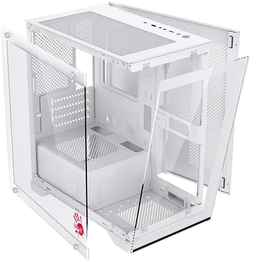 Корпус Bloody BD-CC103-WH белый Одной из особенностей данного корпуса является материал окна - закалённое стекло. Это не только придаёт корпусу стильный внешний вид, но и защищает ваши компоненты от пыли и внешних повреждений. Кроме того, корпус оснащён внутренними отсеками для установки жёстких дисков: один отсек для 2.5' дисков и один для 3.5' дисков, что обеспечивает удобство и гибкость при сборке вашей системы. Блок питания не входит в комплектацию данного корпуса, что даёт вам возможность выбрать и установить блок питания по вашему усмотрению. Расположение блока питания в нижней части корпуса обеспечивает оптимальное распределение тепла и улучшает общую вентиляцию внутреннего пространства. Несмотря на компактные размеры Mini-Tower, в данном корпусе предусмотрено достаточно места для установки необходимых компонентов. Корпус поддерживает установку материнских плат различных форм-факторов, а также имеет достаточное количество портов для подключения периферийных устройств. Корпус Bloody BD-CC103 White отличается элегантным дизайном, функциональностью и высоким качеством материалов. Благодаря поперечному размещению HDD у вас будет доступ к жёстким дискам без необходимости снятия других компонентов. Этот корпус станет отличным выбором для тех, кто ценит не только производительность, но и внешний вид своей системы. Внешний вид и/или характеристики товара могут быть изменены производителем в соответствии с производственным процессом.