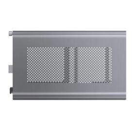 Корпус для постройки малогабаритного ПК JONSBO N1 Gray не имеет предустановленного блока питания, так как при выборе подходящего БП лучше ориентироваться на суммарное энергопотребление сборки. Для удаления тепла от нагретых компонентов системного блока в этой модели предусмотрен один 140-миллиметровый оконный кулер в верхней панели.