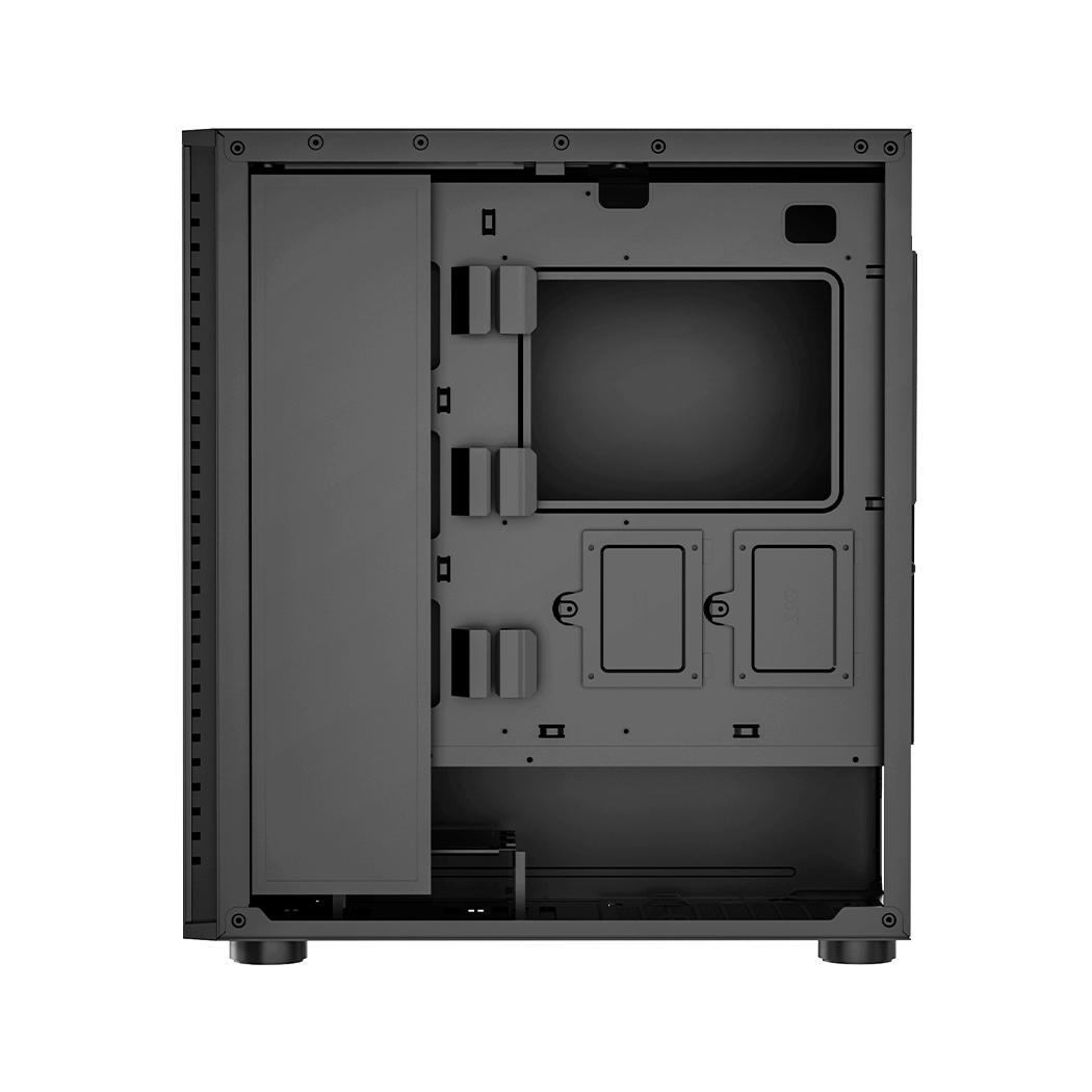 Корпус выполнен из высококачественной SPCC стали и закаленного стекла, что гарантирует его долговечность и устойчивость к повреждениям. Черный цвет и прозрачная боковая панель придают системе элегантный и современный вид, который гармонично впишется в любой интерьер.