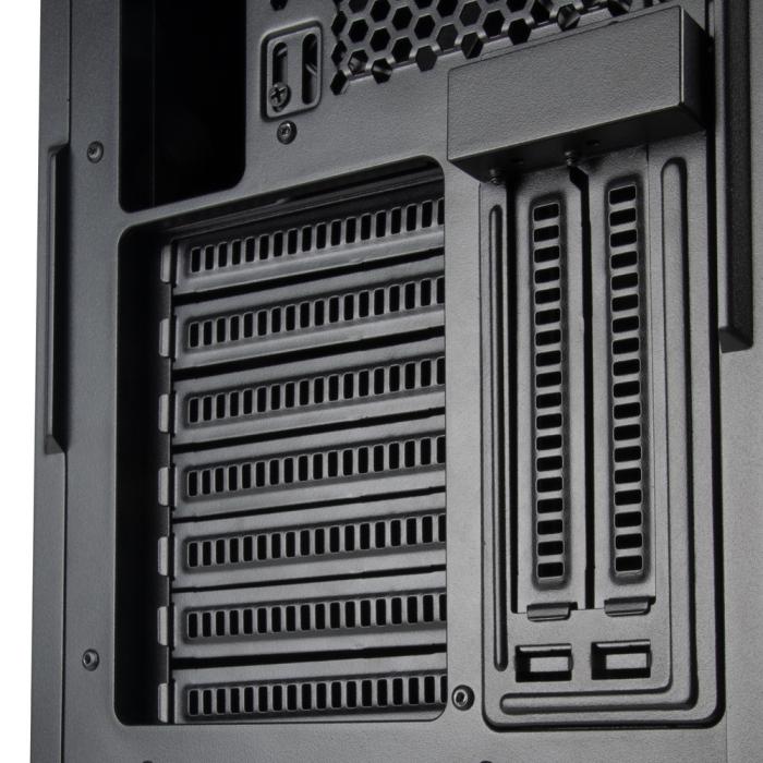 | Особенности | Боковая панель из закаленного стекла на петлях. 7 горизонтальных и 2 вертикальных слота расширения. Комбинированный аудиоразъем. |