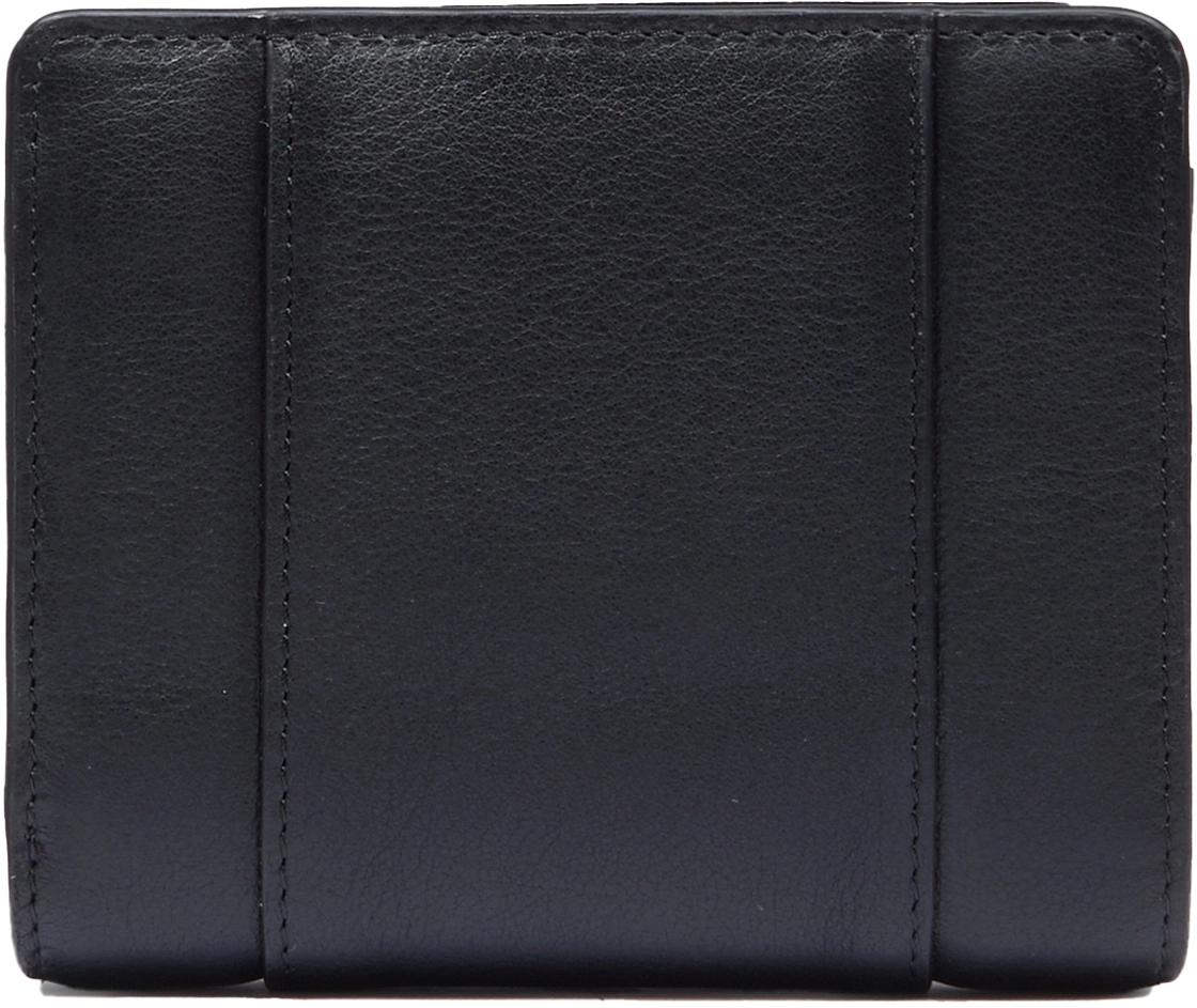 Описание Небольшой кожаный женский кошелек-двойник с карманом для монет, отделениями для кредитных карт и защитой от RFID-мошенничества