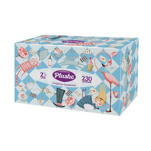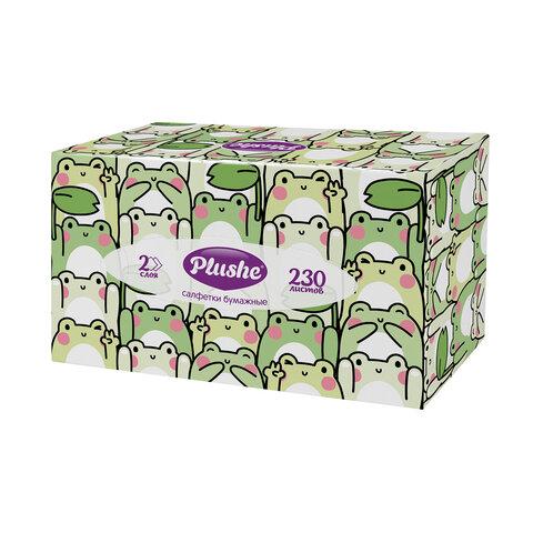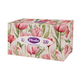 Бумажные салфетки, надежно хранятся в коробочках по 230 штук. Салфетки Plushe изготовлены из 100% первичной целлюлозы, что делает их мягкими и гипоаллергенными. Удобный формат упаковки отлично разместится, как на кухонном столе, так и в детской комнате.Салфетки бумажные в коробочках, Plushe 230 листов, 2х слойные, V-сложение