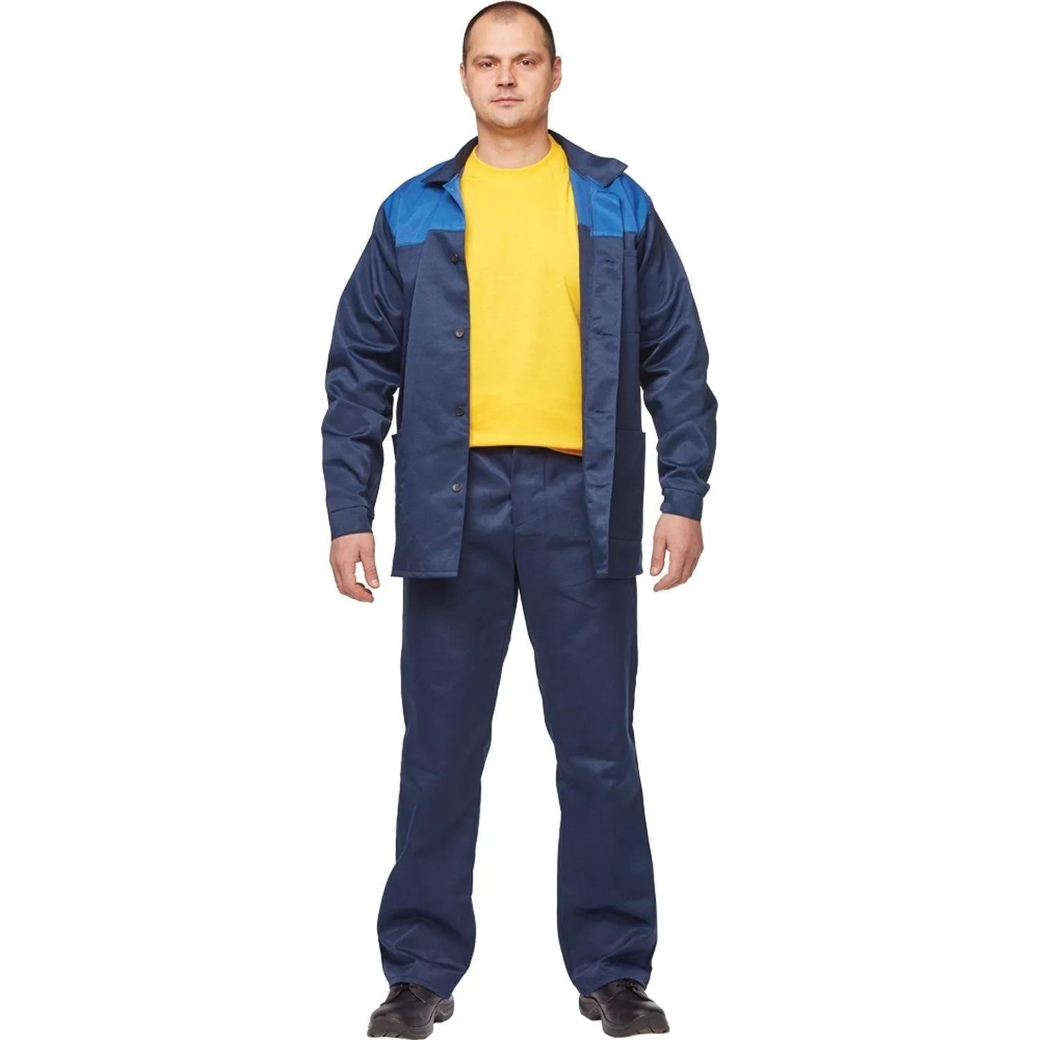 Костюм рабочий летний мужской л16-КБР синий/васильковый (размер 120-124 (60-62), рост 158-164) <br><br>Костюм рабочий состоит из куртки и брюк. Он предназначен для использования в сферах логистики, строительства, сельского хозяйства, лёгкой промышленности и озеленения. Костюм обеспечит комфорт и безопасность при работе в условиях плохой видимости и повышенной опасности, таких как работа вблизи техники или на открытых площадках. <br><br>Ткань основная: смесовая (80% полиэстер, 20% хлопок), плотность 190 г/кв.м. Материал обладает водоотталкивающими свойствами, устойчив к истиранию и механическим повреждениям. <br><br>Защитные свойства: <br>— Ми — защита от механических воздействий: истирания; <br>— З — защита от общих производственных загрязнений. <br><br>Куртка имеет удлинённый прямой силуэт, который не стесняет движения, что делает её удобной для работы в различных сферах. Центральная застежка на петлях и пуговицах, воротник отложной. На куртке предусмотрены три накладных кармана для удобства хранения различных предметов, один нагрудный накладной, два нижних накладных. Рукава втачные одношовные. Регулировка ширины манжет рукава при помощи пуговиц. По спинке и полочкам отрезные кокетки из отделочной ткани. Световозвращающая лента шириной 50 мм расположена по кокеткам полочки, спинки и низу рукавов. <br><br>Брюки выполнены в прямом силуэте. Застежка гульфика брюк на петлях и пуговицах, пуговица по поясу. На поясе расположены шлевки для ремня. На брюках расположены два накладных кармана с наклонным входом. Световозвращающая лента шириной 50 мм настрочена по низу брюк.<br><br>Модель соответствует требованиям ГОСТ 12.4.280-2014 и ТР ТС 019/2011.<br><br>Коллекция спецодежды л16 представлена комплектами куртка-брюки л16-КБР и куртка-полукомбинезон л16-КПК. <br><br>В связи с особенностями технологии выкраса ткани в изделии могут наблюдаться различия в цвете отдельных элементов. <BR><BR>Подобрать размер <br><br>Цвет на изображении товара в интернет-магазине или в печатном каталоге может отличаться от оригинала из-за особенностей цветопередачи монитора.