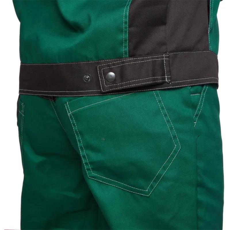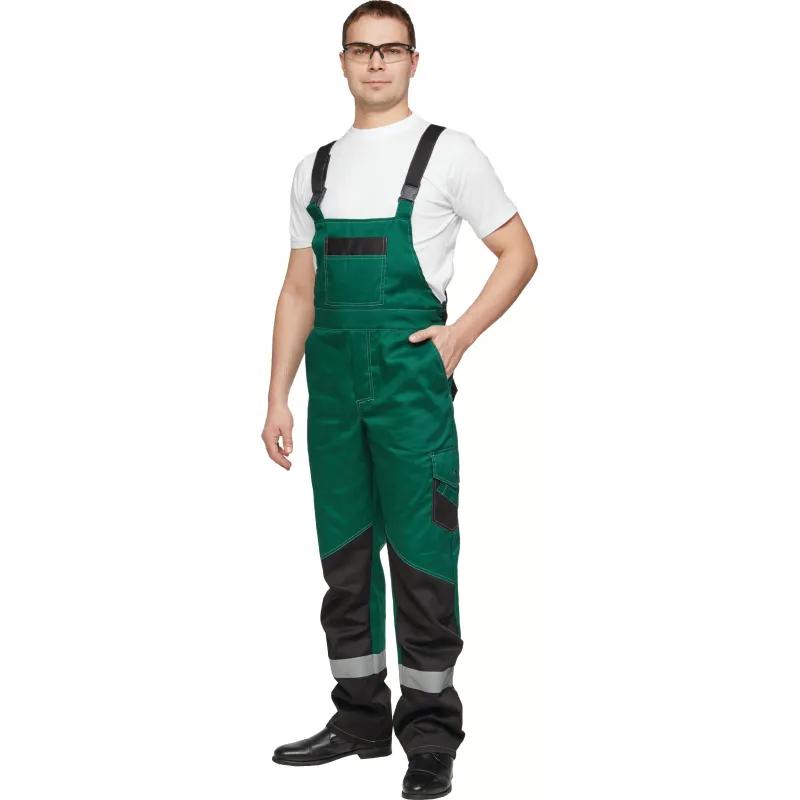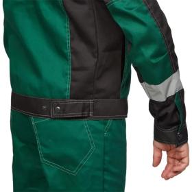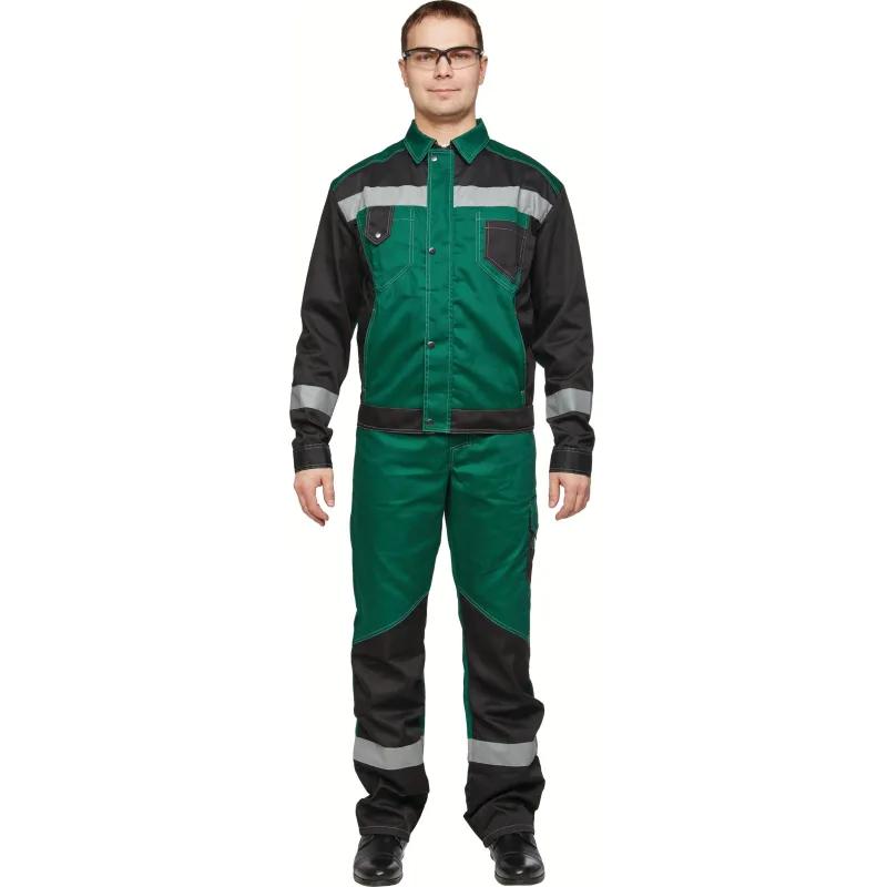 Костюм рабочий летний мужской л21-КПК КОС212 с СОП зеленый/черный (размер 56-58, рост 182-188). Коллекция спецодежды л21 представляет собой надежное решение для защиты от общих производственных загрязнений и от механических повреждений, от истирания. Костюм мужской л21-КПК состоит из куртки и полукомбинезона. Идеально подходит для использования в сельском хозяйстве, логистике, легкой и тяжелой промышленности, а также в строительстве. Костюм изготовлен из смесовой ткани с водоотталкивающей пропиткой (ВО), состоящей на 65% из полиэстера и на 35% из хлопка. Плотность материала составляет 235 г/кв.м. Такая комбинация обеспечивает высокую износостойкость и комфорт при носке. Материал не имеет специальной пропитки, но его структура обеспечивает достаточную защиту от загрязнений. Защитные свойства: защита от общих производственных загрязнений. Куртка имеет прямой силуэт и регулируется по фигуре с помощью кнопок на поясе. Застегивается на молнию и кнопки. На куртке два верхних накладных кармана. Рукава снабжены налокотниками и манжетами, что повышает комфорт и долговечность изделия. Полукомбинезон также имеет прямой силуэт и застегивается на пуговицы. Впереди расположены два накладных кармана со скошенным входом и один верхний накладной карман. Сзади полукомбинезон имеет два накладных кармана, один из которых на кнопке, а также боковой накладной карман на кнопке. Светоотражающие полосы шириной 50 мм размещены на груди, спине, рукавах и внизу полукомбинезона, обеспечивая хорошую видимость в условиях недостаточной освещенности. Рекомендации по уходу: для продления срока службы изделия рекомендуется соблюдать инструкции по стирке и уходу, указанные на этикетке. Стандарты: ГОСТ 12.4.280-2014, ТР ТС 019/2011. Коллекция спецодежды Премиум-класса л21 выполнена в стильном, функциональном дизайне, в широкой цветовой гамме. Костюмы, представленные в ней, предназначены для защиты от общих производственных загрязнений и от механических повреждений, от истирания. Рекомендуется для инженерно-технических работников. <br><br>Подобрать размер<br><br>Цвет на изображении товара может отличаться от оригинала из-за особенностей цветопередачи монитора.